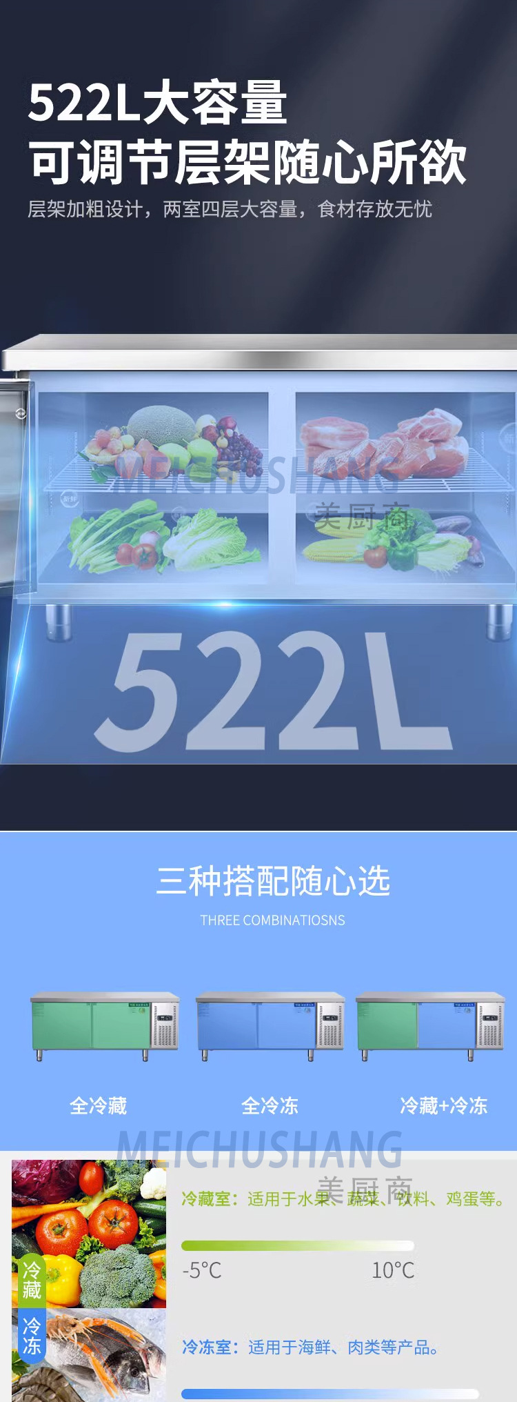 Bàn làm việc lạnh tủ lạnh thương mại bàn mổ tủ đông tủ đông ngang phẳng lạnh nước ngọt thiết bị thanh nhiệt độ kép