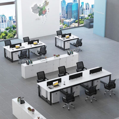 Bàn làm việc nhân viên bàn làm việc hiện đại Phòng nhân viên văn phòng làm việc màn hình bàn đôi ghế bốn người văn phòng máy tính kết hợp