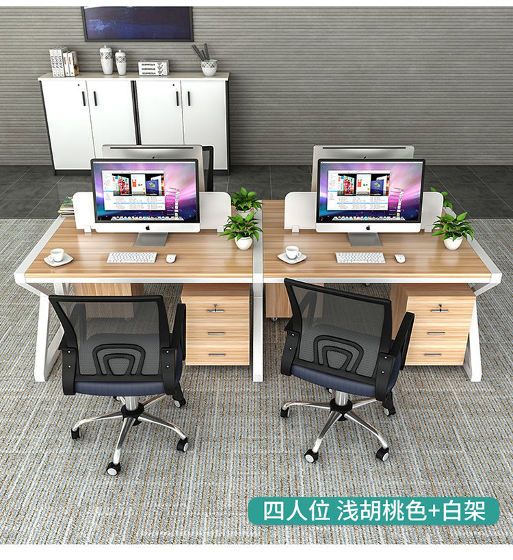 Bàn làm việc nhân viên hiện đại đơn giản Bàn ghế văn phòng bốn người kết hợp vách ngăn ghế ngồi bàn máy tính công ty