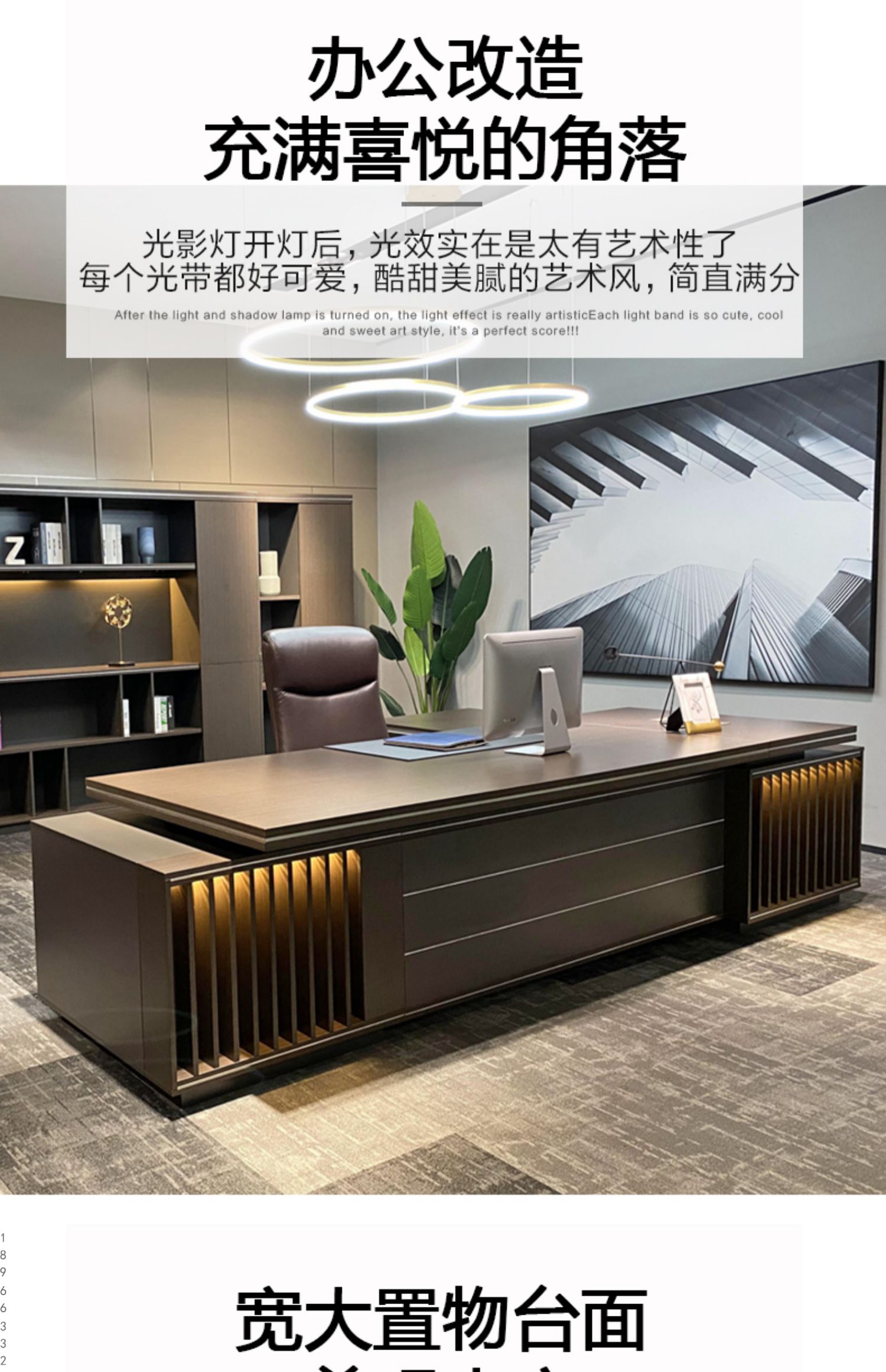 Bàn làm việc văn phòng Bàn làm việc Chủ tịch hiện đại đơn giản Bàn làm việc văn phòng Ghế giám đốc sang trọng có đèn LED