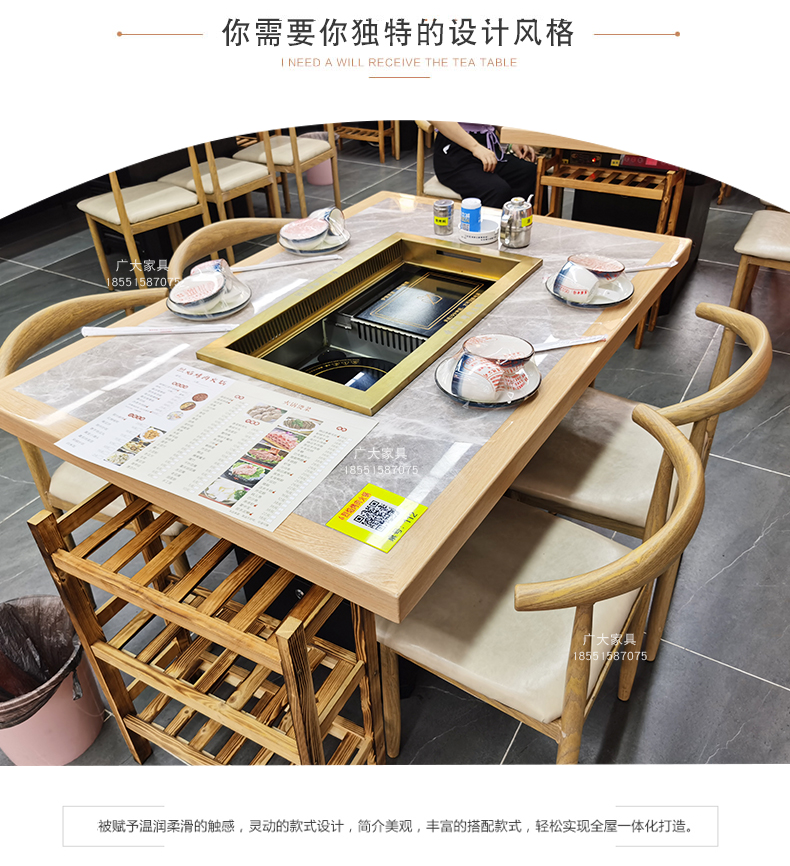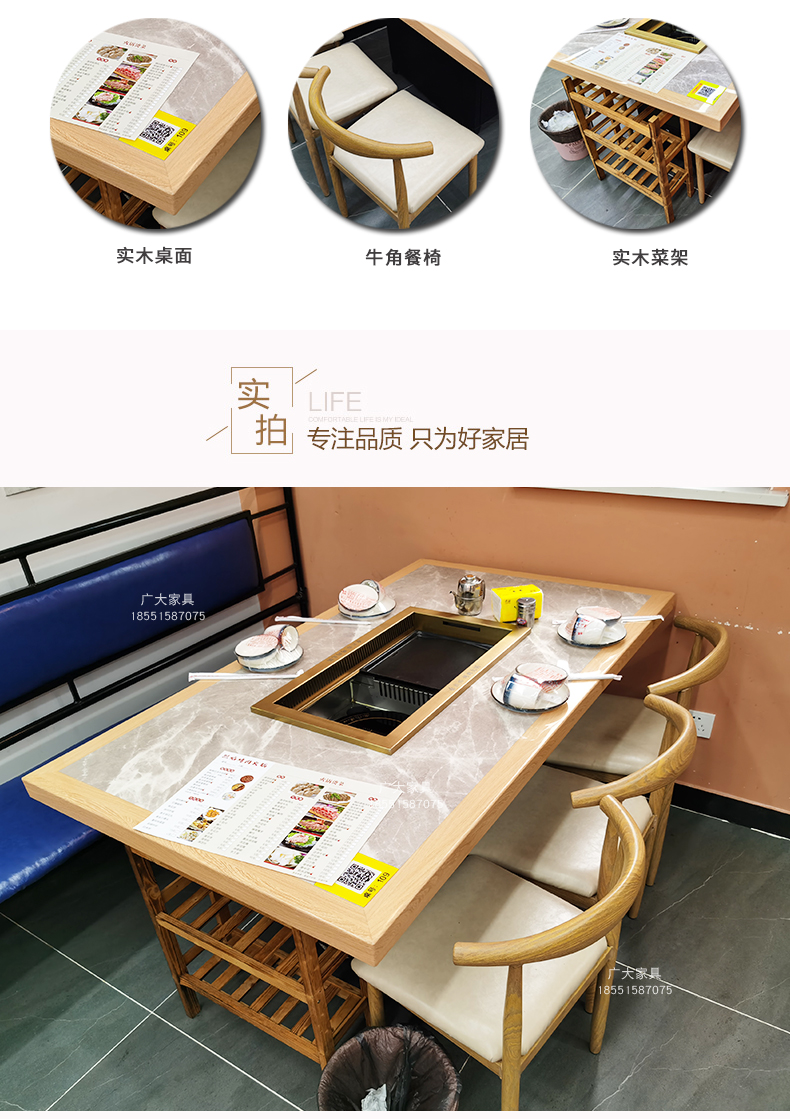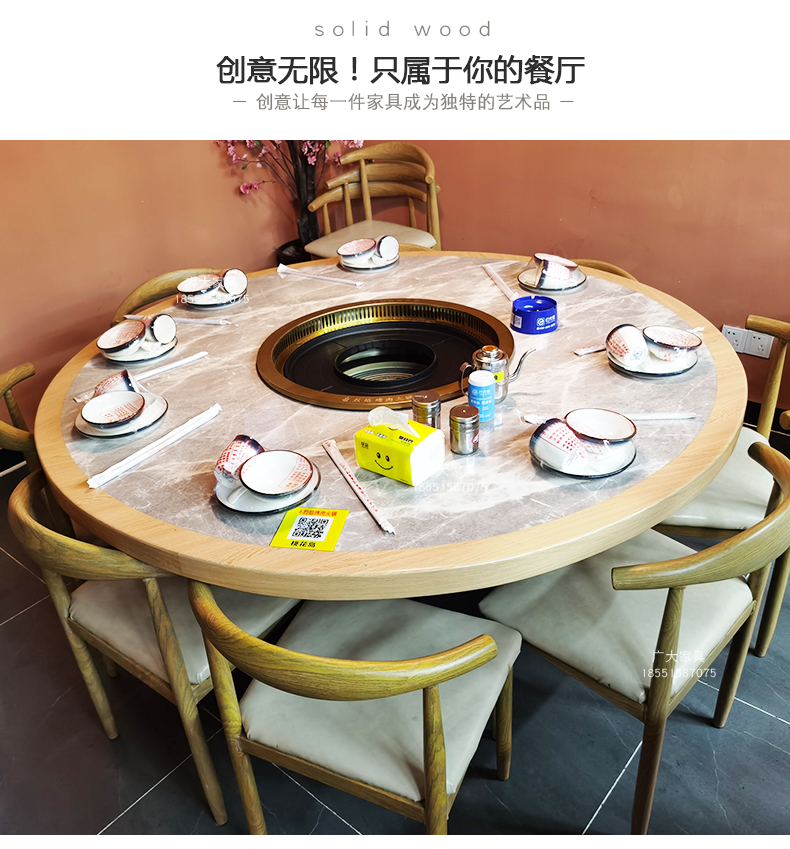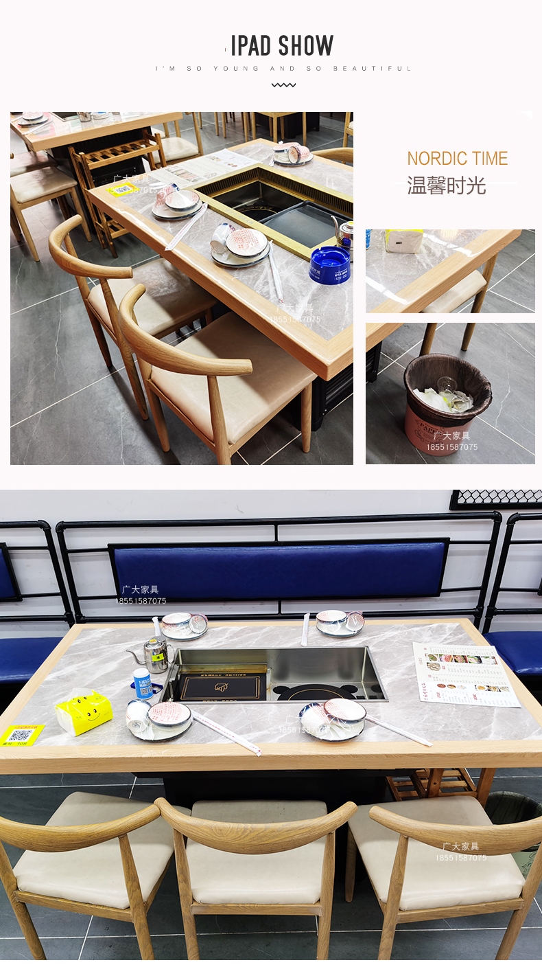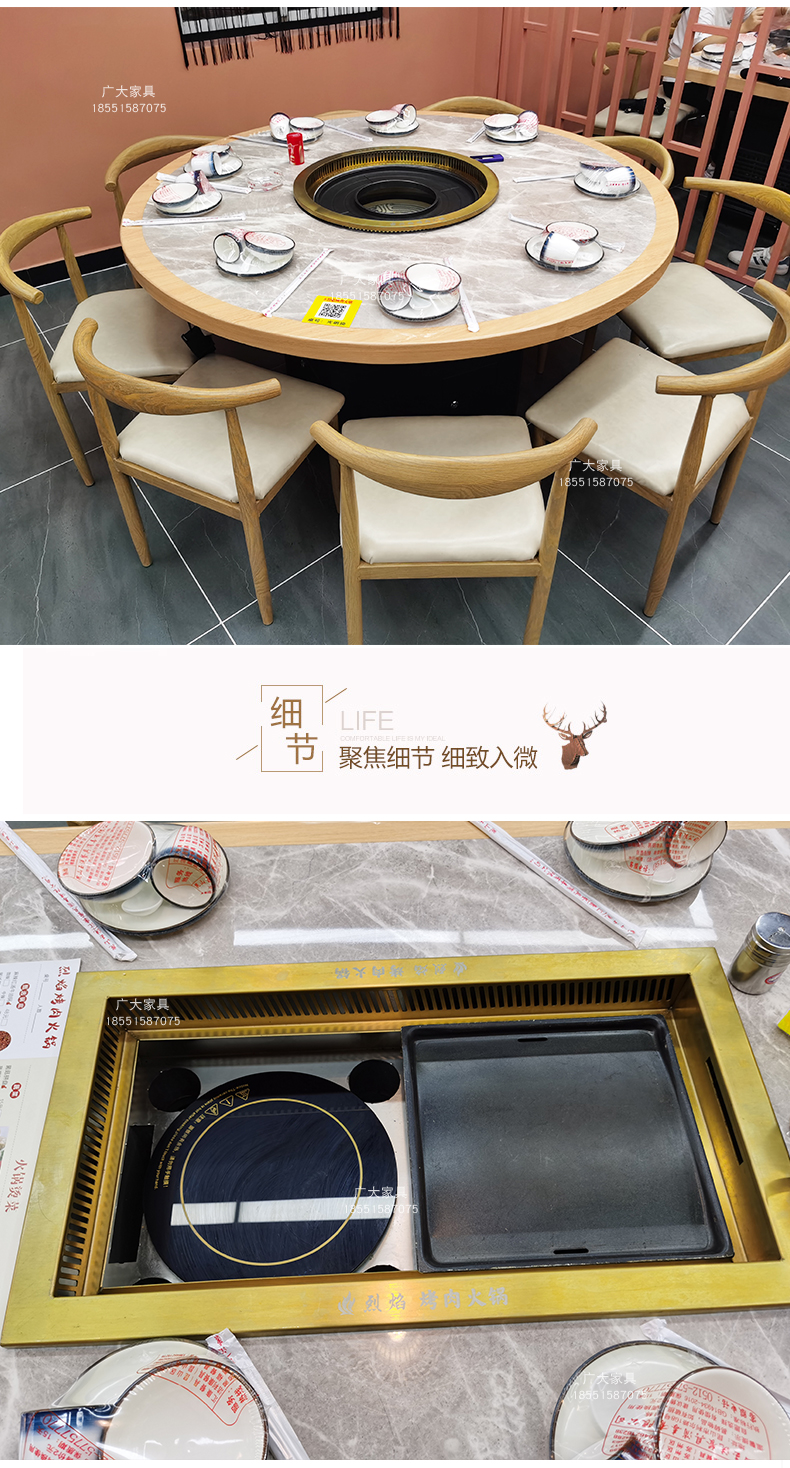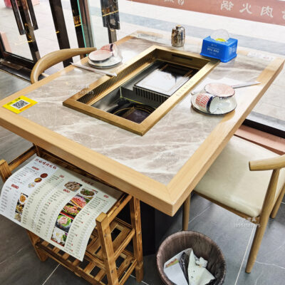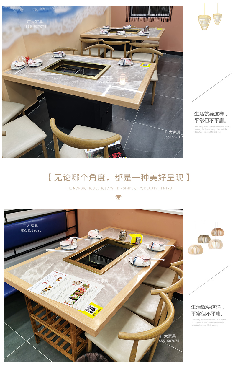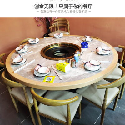 Bàn lẩu bằng đá cẩm thạch Bếp điện từ bằng gỗ đặc hình tròn doanh nhân nướng và tráng tích hợp thanh lọc không khói hút khói Bàn nướng than kiểu Hàn Quốc – Bàn ăn nhập khẩu cao cấp
