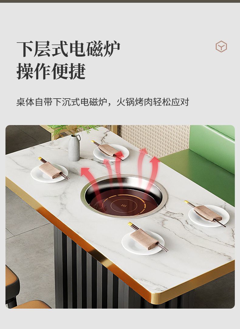 Bàn Lẩu bằng đá cẩm thạch mới làm Bếp từ cảm ứng tích hợp gian hàng nướng thịt nướng không khói thương mại Bàn ghế sofa là thiết bị nằm trong danh mục Đồ nhà hàng > Bếp nướng, được thiết kế chuyên dụng cho các nhà hàng cần sự tiện nghi và chuyên nghiệp.