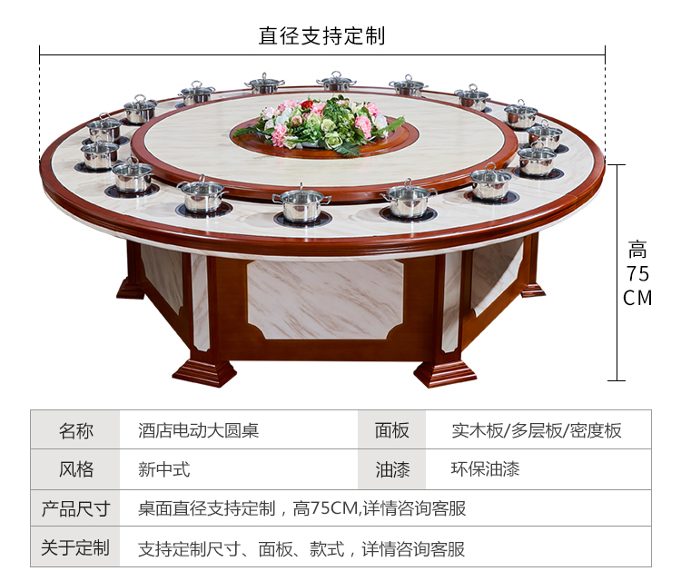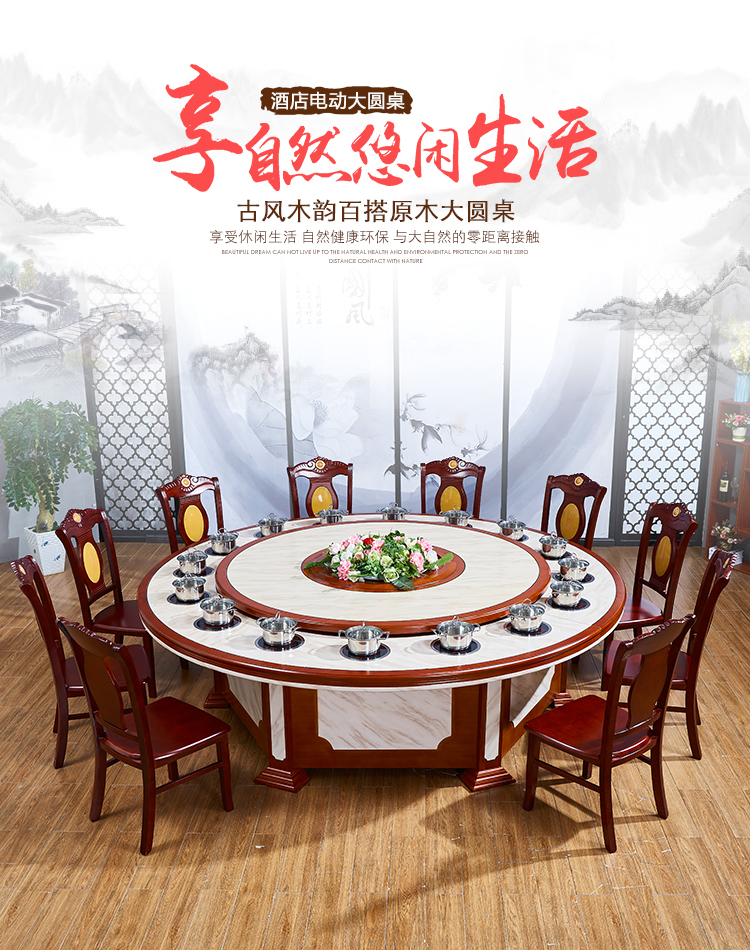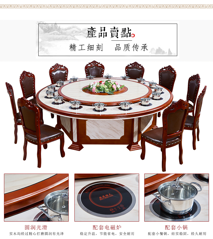 Bàn lẩu bếp từ một khách sạn thương mại bàn ăn điện bàn tròn lớn khách sạn hộp 15 người 20 người bàn xoay – Bàn ăn nhập khẩu cao cấp