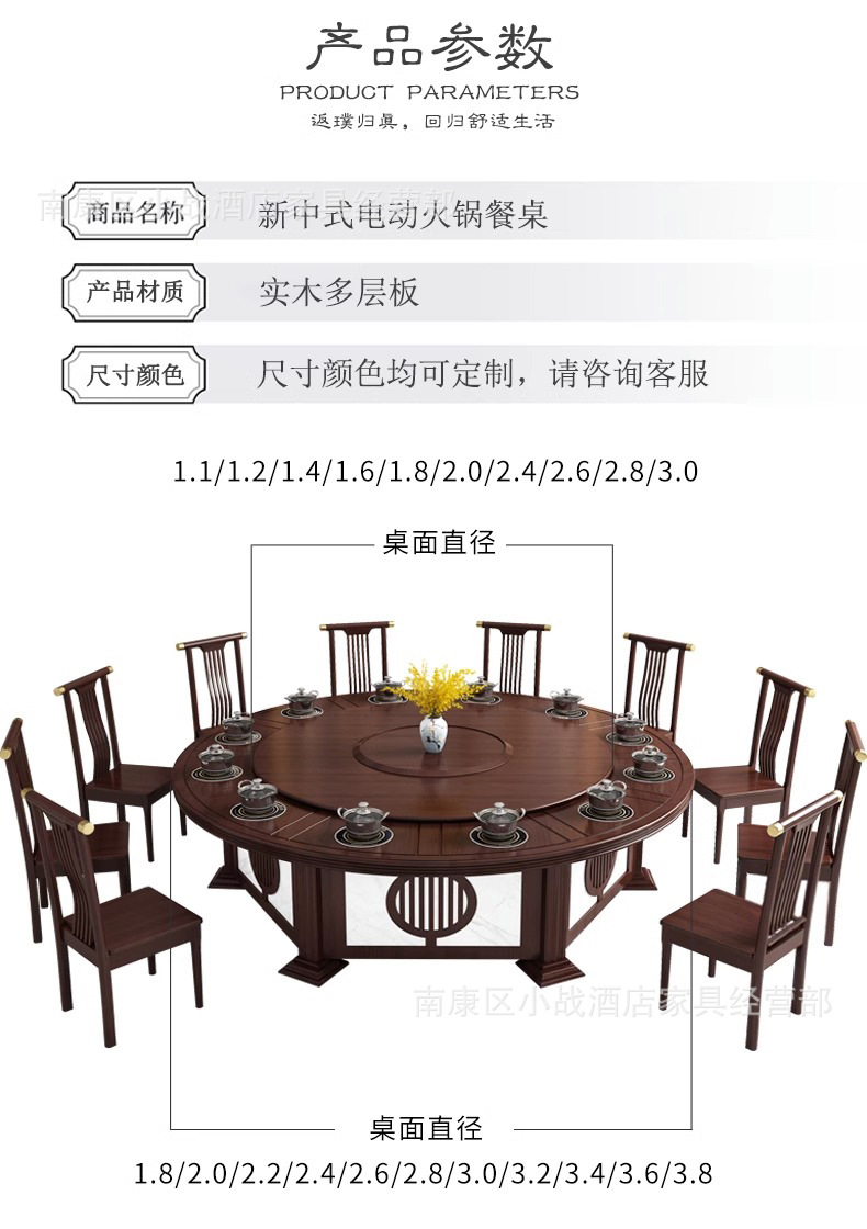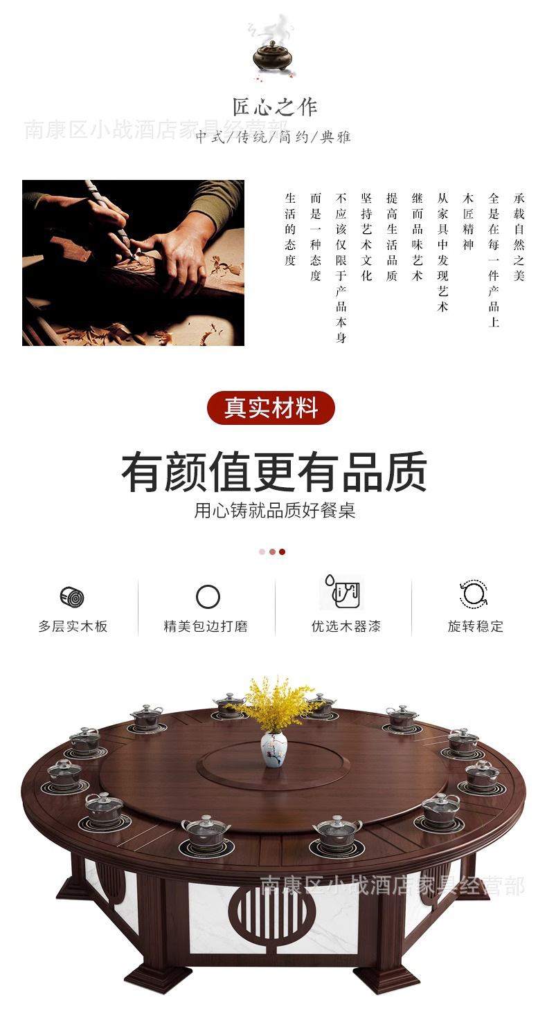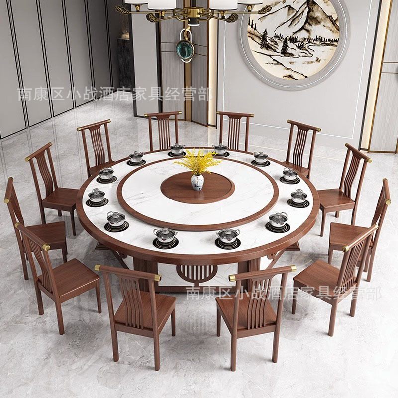 Bàn Lẩu, Bếp xoay tự động từ, Một người, Một nồi, Bàn ăn Lẩu nhỏ, Khách sạn thương mại Bàn tròn lớn kiểu Trung Quốc mới