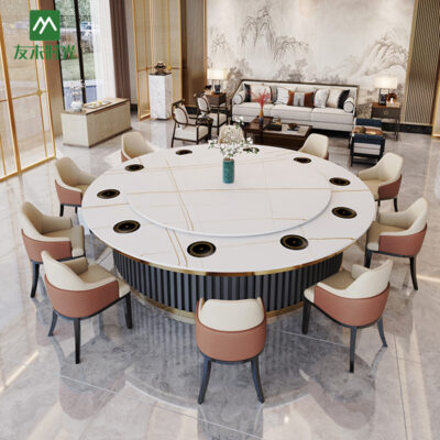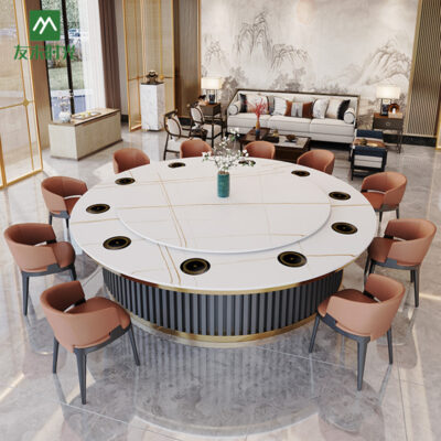 Bàn Lẩu đá phiến cảm ứng tích hợp bàn ăn tròn khách sạn thương mại hộp tiệc có bàn xoay khách sạn bàn tròn lớn