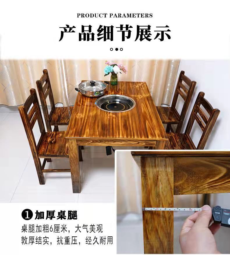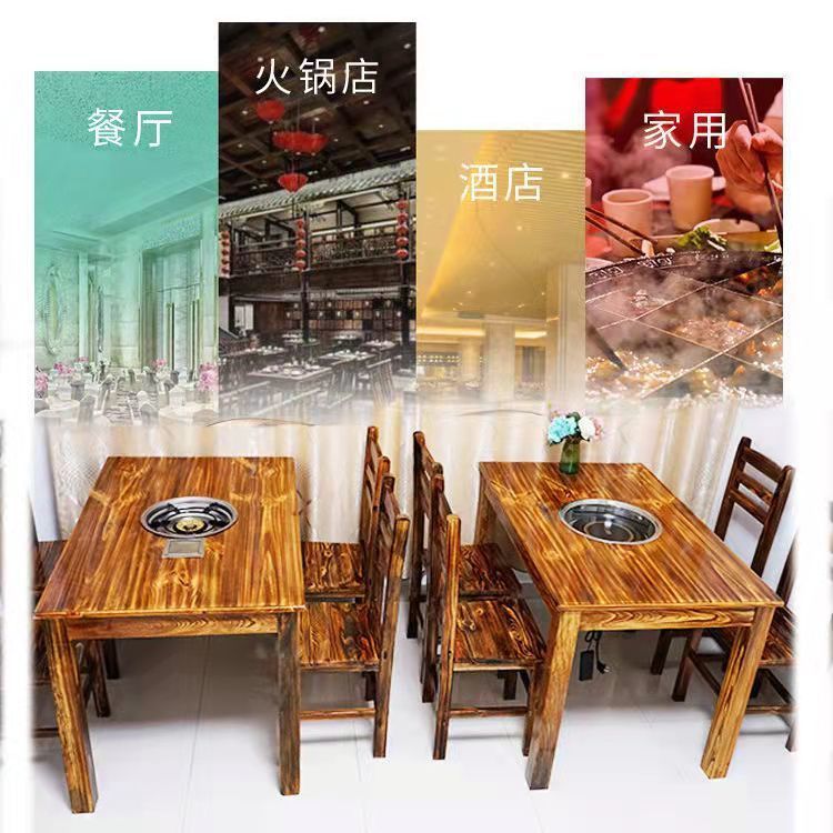Bàn lẩu gỗ nguyên khối, bếp từ, nhà hàng thương mại, quầy bán đồ nướng, bàn ghế hình chữ nhật khách sạn kết hợp là thiết bị nằm trong danh mục Đồ nhà hàng > Bếp nướng, được thiết kế chuyên dụng cho các nhà hàng cần sự tiện nghi và chuyên nghiệp.