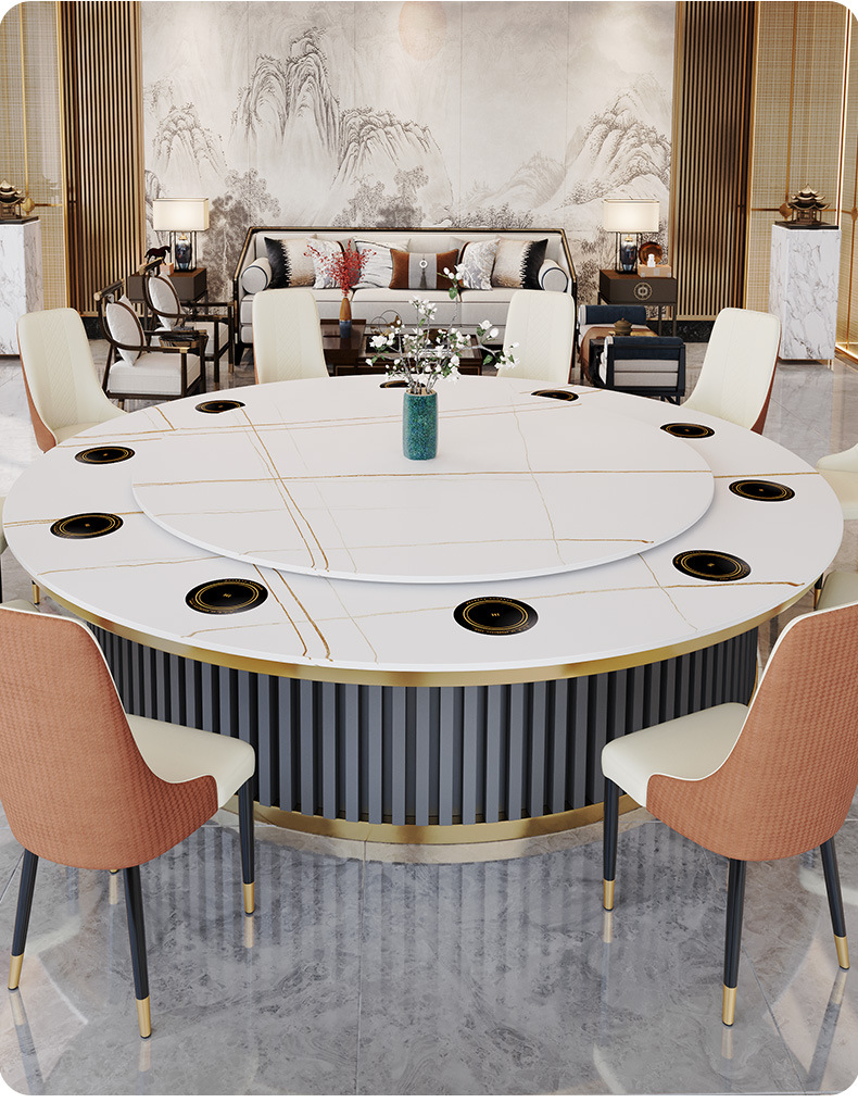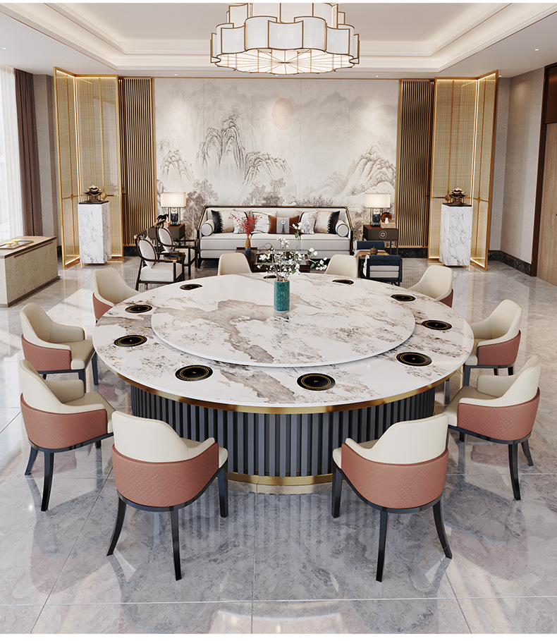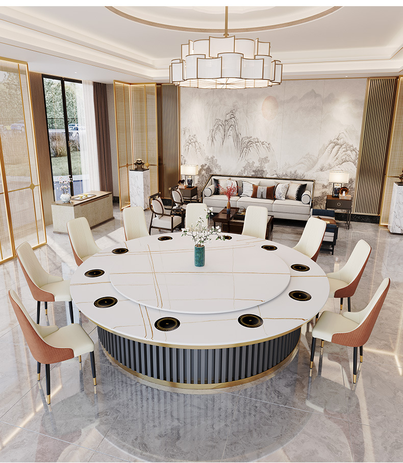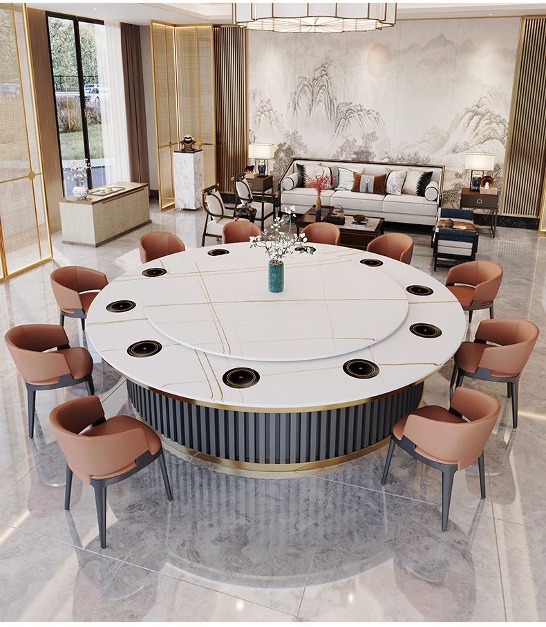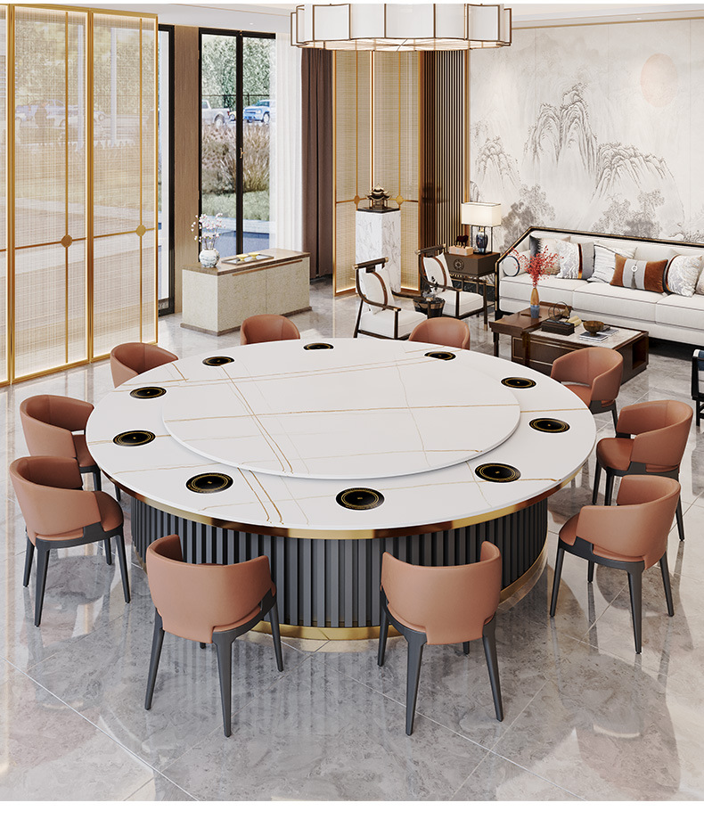Bàn lẩu tấm đá bếp điện từ tích hợp khách sạn doanh nhân Bàn ăn tròn tiệc với bàn xoay khách sạn bàn tròn lớn – Bàn ăn nhập khẩu cao cấp