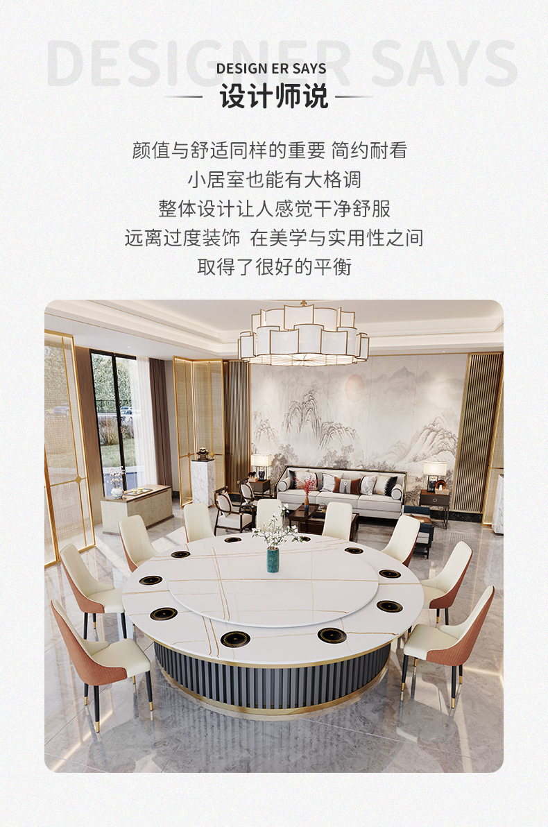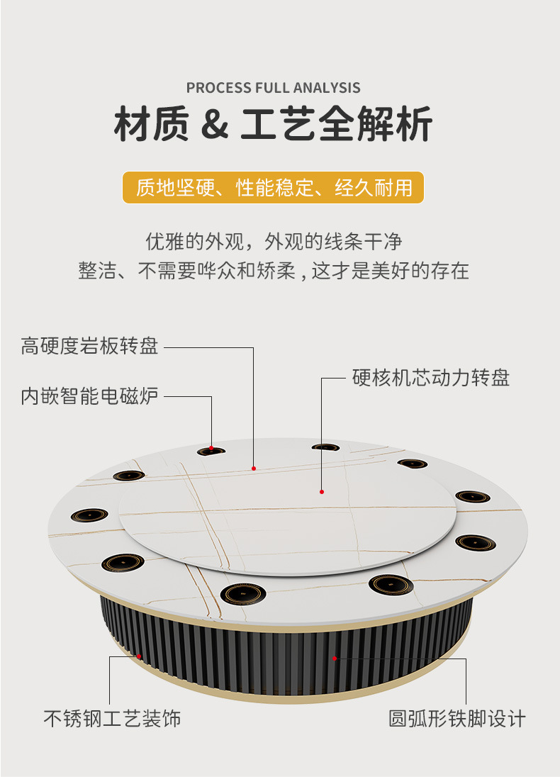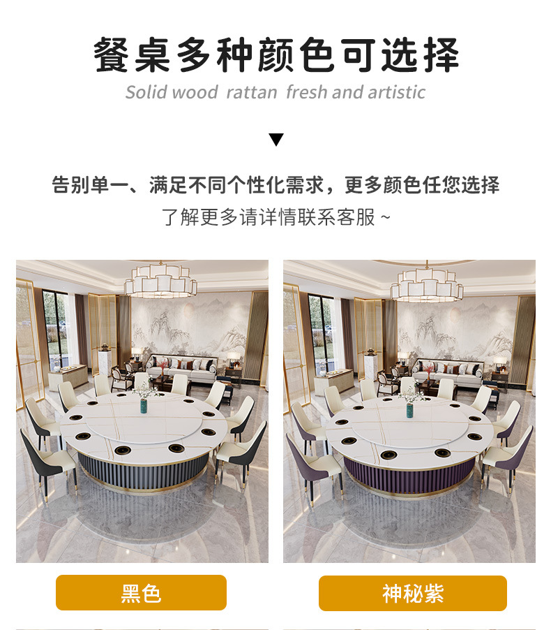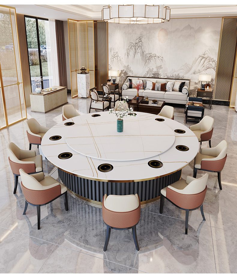 Bàn lẩu tấm đá bếp điện từ tích hợp khách sạn doanh nhân Bàn ăn tròn tiệc với bàn xoay khách sạn bàn tròn lớn – Bàn ăn nhập khẩu cao cấp