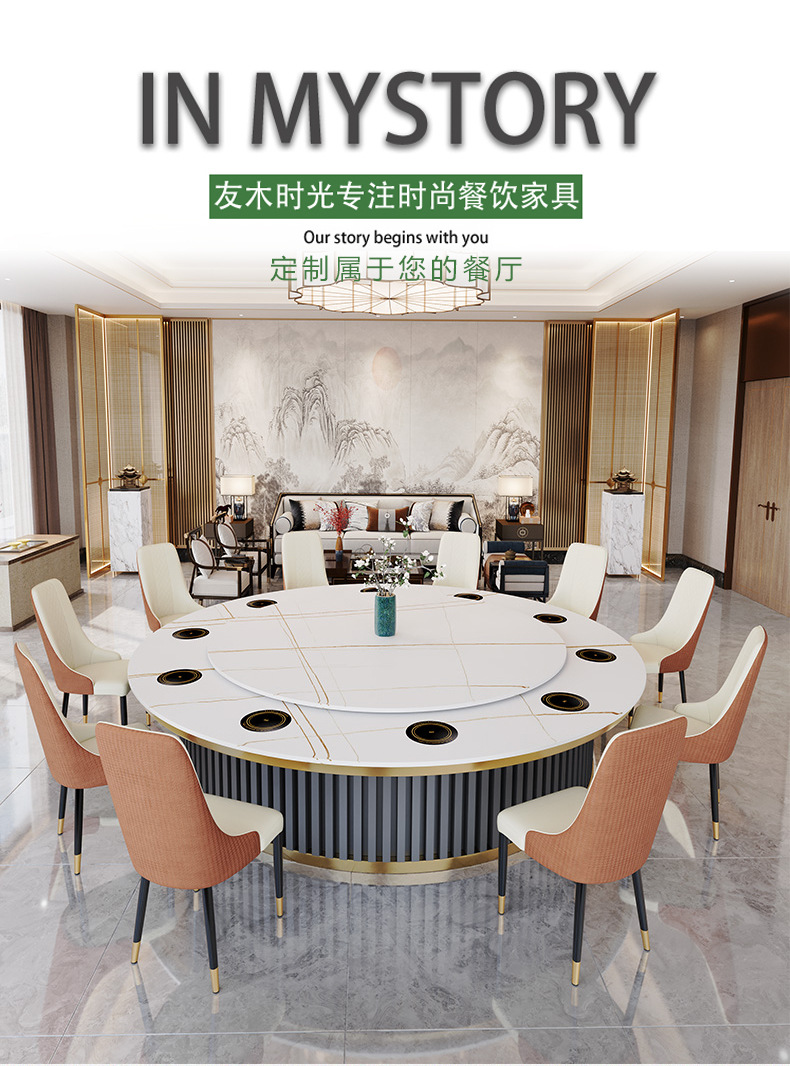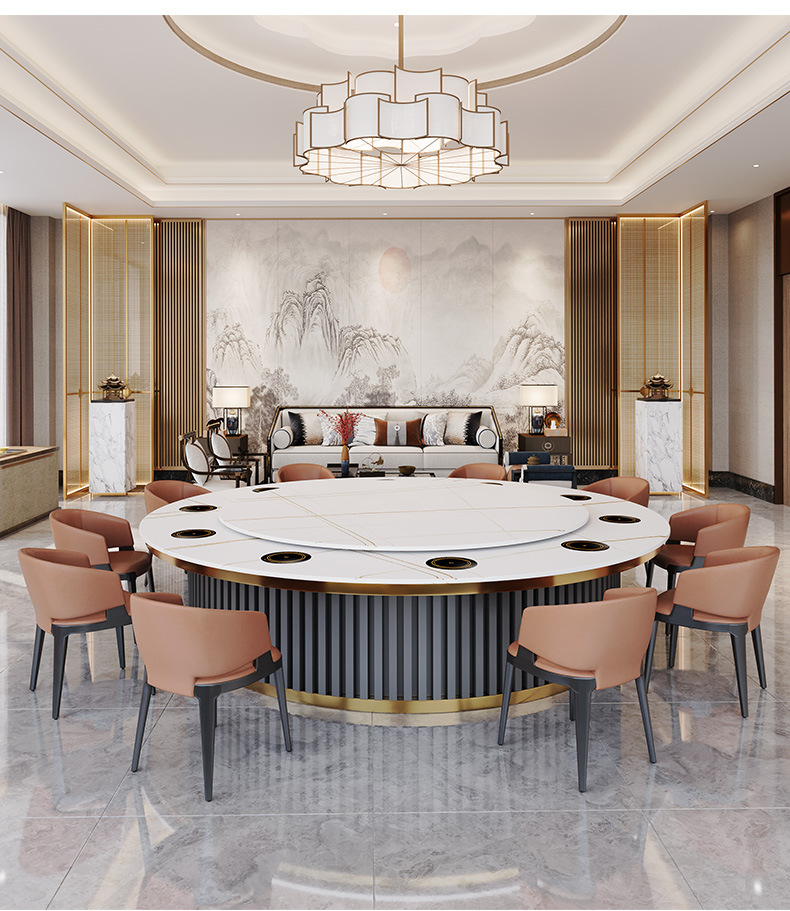 Bàn lẩu tấm đá bếp điện từ tích hợp khách sạn doanh nhân Bàn ăn tròn tiệc với bàn xoay khách sạn bàn tròn lớn