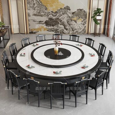 Bàn lẩu tấm đá bếp điện từ tích hợp khách sạn doanh nhân Bàn ăn tròn tiệc với bàn xoay khách sạn bàn tròn lớn – Bàn ăn nhập khẩu cao cấp
