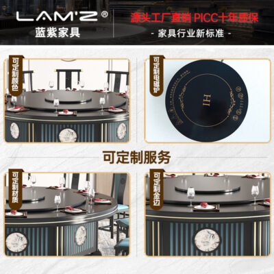 Bàn lẩu tấm đá bếp điện từ tích hợp khách sạn doanh nhân Bàn ăn tròn tiệc với bàn xoay khách sạn bàn tròn lớn