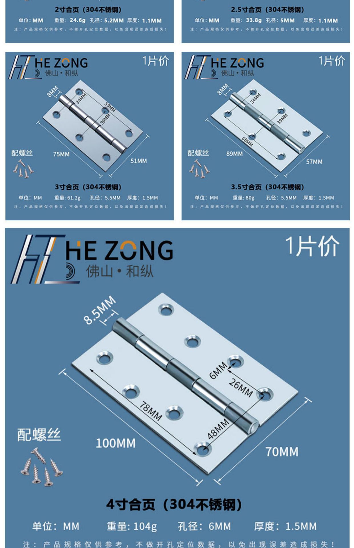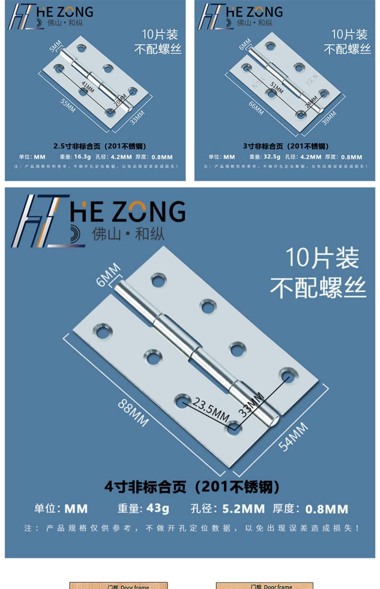 Thương hiệu: Hezong Model: ZH300 series Thông số kỹ thuật: 1 mảnh thép không gỉ chải (thép không gỉ 201) / 1,5 inch thép không gỉ chải (thép không gỉ 201) / 2 inch thép không gỉ chải (thép không gỉ 201) / 2,5 inch thép không gỉ chải thép (thép không gỉ 201)/Một mảnh thép không gỉ chải 3 inch (thép không gỉ 201)/một mảnh thép không gỉ chải 3,5 inch (thép không gỉ 201)/một mảnh thép không gỉ chải 4 inch (thép không gỉ 201)/một mảnh thép không gỉ chải 1 inch (thép không gỉ 304)/một mảnh thép không gỉ chải 1,5 inch (thép không gỉ 304)/Thép không gỉ chải 2 inch (thép không gỉ 304) một mảnh/Thép không gỉ chải 2,5 inch (thép không gỉ 304) một mảnh/Thép không gỉ chải 3 inch (thép không gỉ 304) một mảnh/Thép không gỉ chải 3,5 inch (thép không gỉ 304) một mảnh/Thép không gỉ chải 4 inch (thép không gỉ 304) một mảnh/Thép không gỉ chải 1,5 inch không gỉ tiêu chuẩn (10 cái) không có ốc vít / thép không gỉ chải 2 inch không tiêu chuẩn (10 cái) không có ốc vít / thép không gỉ chải 2,5 inch không tiêu chuẩn (10 cái) không có ốc vít / thép không gỉ chải 3 inch không tiêu chuẩn Tiêu chuẩn (10 cái) không có ốc vít / thép không gỉ chải 4 inch phi tiêu chuẩn (10 cái) không có ốc vít / thép không gỉ chải 4 inch phi tiêu chuẩn (10 cái) không có ốc vít Nhãn hiệu: Yes Cho dù Tổng quát Người nộp thuế: Có Chất liệu: Thép không gỉ 201/304 Xử lý bề mặt thép: Đánh bóng Tùy chỉnh: Có Cho dù Xuất khẩu xuyên biên giới Nguồn cung cấp đặc biệt: Có Khu vực bán hàng chính: Khác Phong cách: Khác Loại: Bản lề vuông thông thường