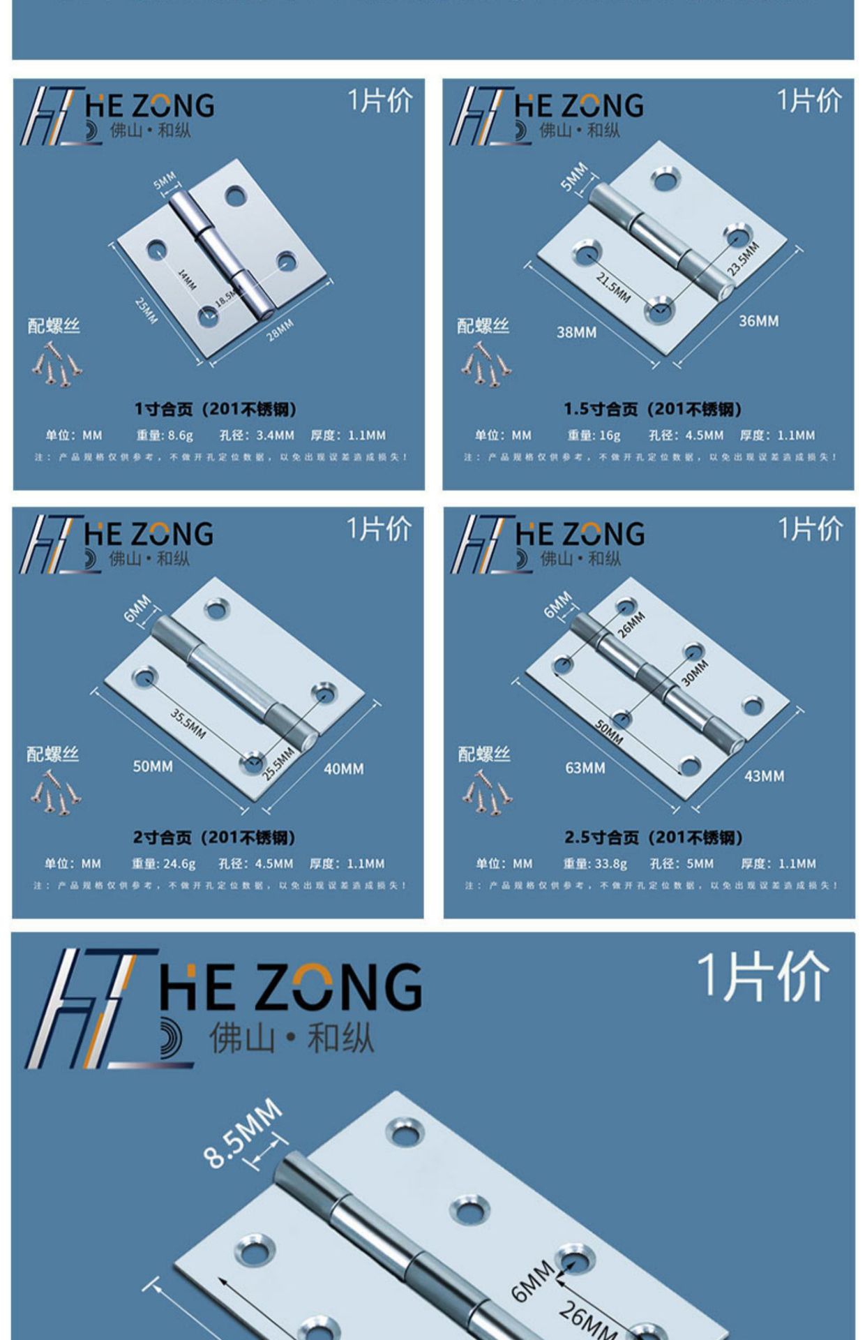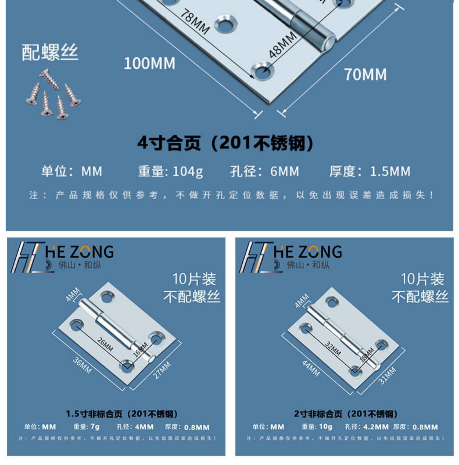 Bản lề phẳng cửa tủ nhỏ bằng thép không gỉ 1,5 inch 2 inch 3 inch cửa chớp và cửa sổ hộp gấp bản lề bản lề lá rời