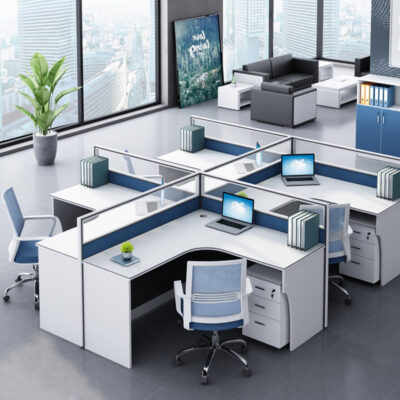 Bàn màn hình đơn giản của nhà sản xuất Phòng nhân viên bốn người nội thất văn phòng kết hợp bàn ghế nhân viên