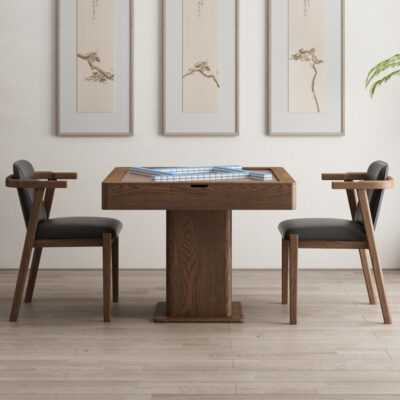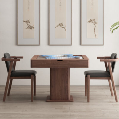 Bàn mạt chược bằng gỗ nguyên khối kiểu Trung Quốc mới hoàn toàn tự động bằng điện có nắp đậy câu lạc bộ máy im lặng hai công dụng Bàn cờ óc chó màu đen