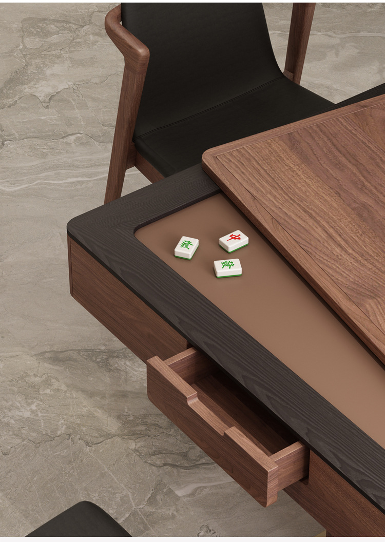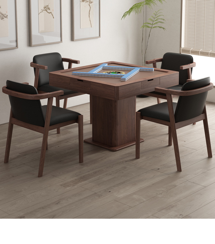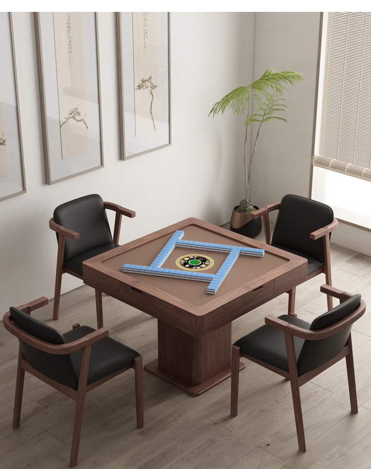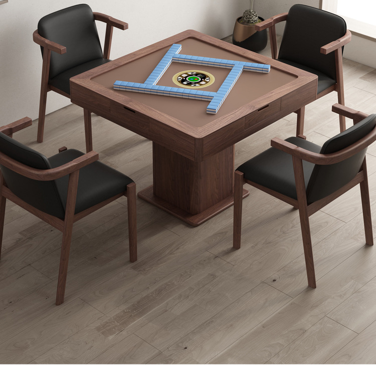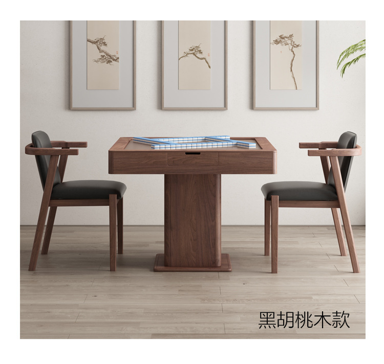 Bàn mạt chược bằng gỗ nguyên khối kiểu Trung Quốc mới hoàn toàn tự động bằng điện có nắp đậy câu lạc bộ máy im lặng hai công dụng Bàn cờ óc chó màu đen