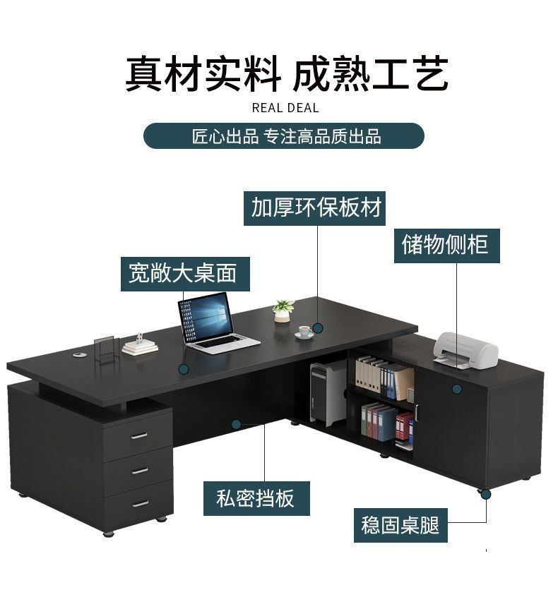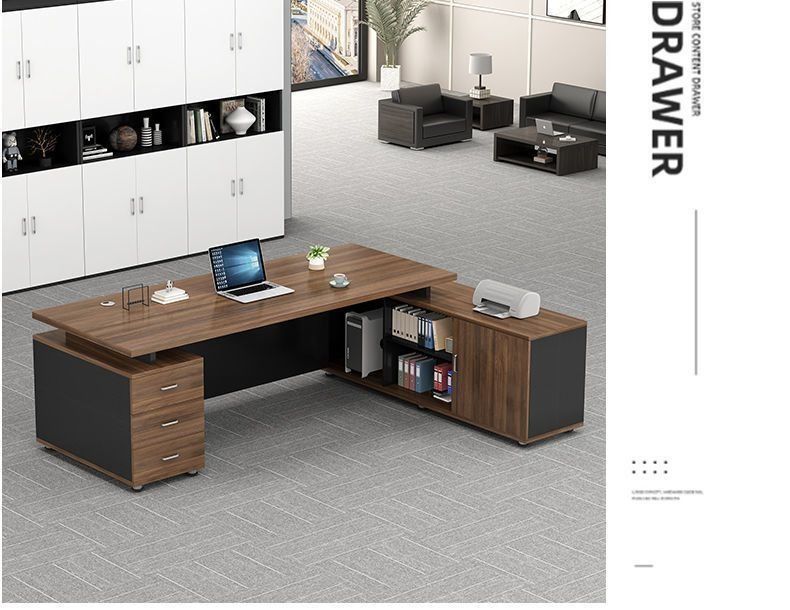 Bàn máy tính Bàn làm việc đơn giản dành cho doanh nghiệp Bàn làm việc của ông chủ có tủ Bàn quản lý văn phòng đơn Bàn chủ tịch điều hành