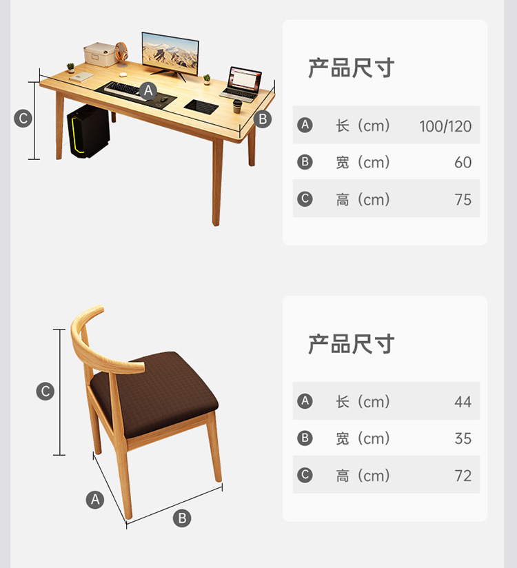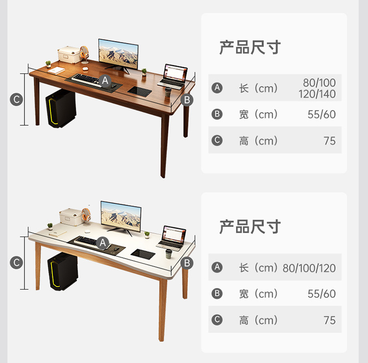 电脑桌台式家用学习桌实木腿书桌卧室床边电竞桌简约学生写字桌子