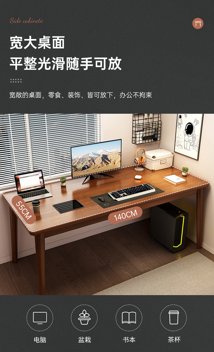 电脑桌台式家用学习桌实木腿书桌卧室床边电竞桌简约学生写字桌子