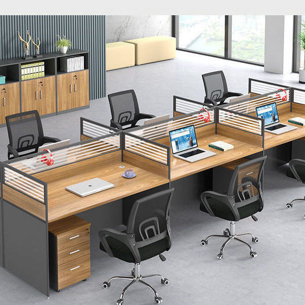 Bàn máy tính nhân viên kết hợp bàn bốn chỗ và ghế hiện đại tối giản màn hình ngăn ghế bàn làm việc đơn giản