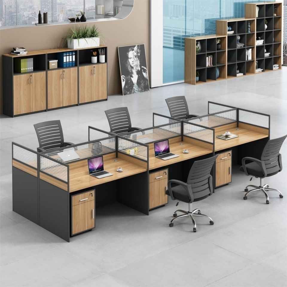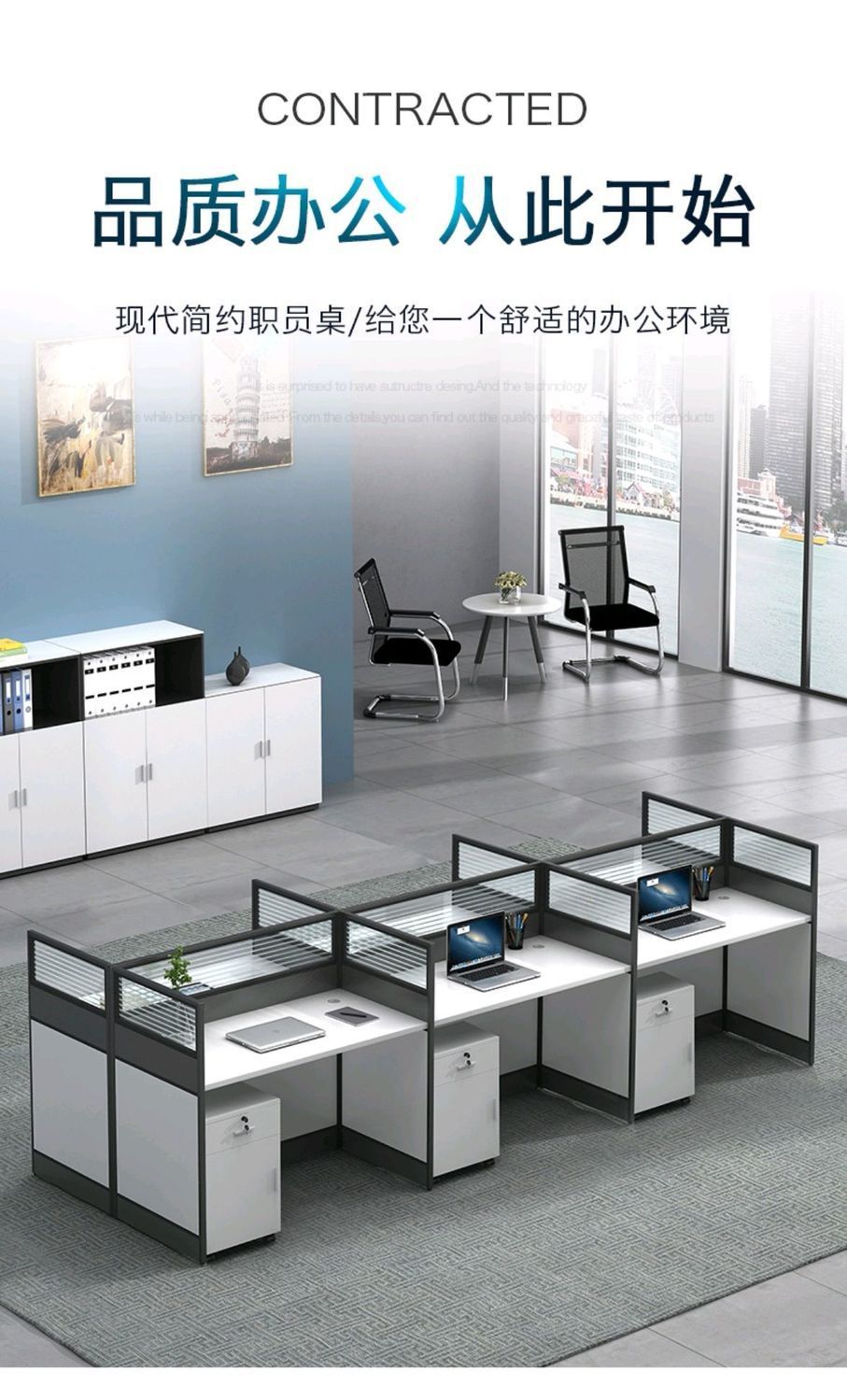 Bàn máy tính nhân viên kết hợp bàn bốn chỗ và ghế hiện đại tối giản màn hình ngăn ghế bàn làm việc đơn giản