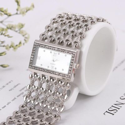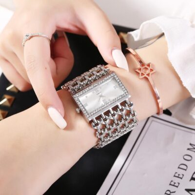 Bán ngoại thương mặt số lớn kim cương nữ phù hợp với vòng tay đồng hồ xu hướng Hàn Quốc dải thép rhinestone đồng hồ thạch anh vuông