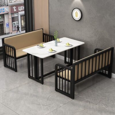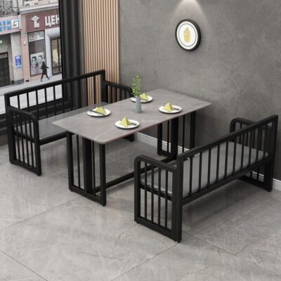 Bàn nhà hàng đơn giản thẻ ghế sofa trà sữa cửa hàng tráng miệng thanh sắt rèn kết hợp lưới màu đỏ snack bar đá phiến bàn ăn