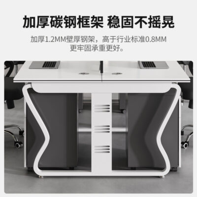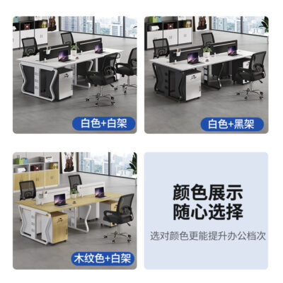 Bàn nhân viên 4 người màu trắng khung thép bàn nhân viên hiện đại đơn giản bàn nhân viên có tủ phụ