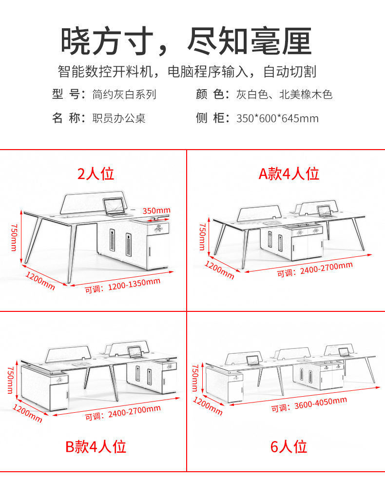 Bàn nhân viên bàn nhân viên 4 người đơn giản, hiện đại 2/4/6 Phòng làm việc bàn ghế kết hợp máy tính sáng tạo