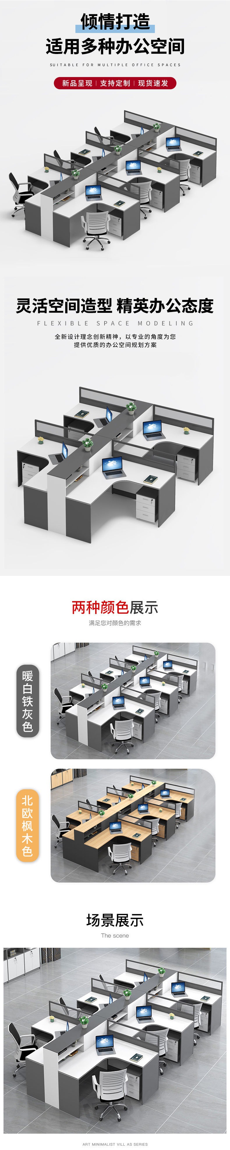 Bàn nhân viên bốn người bàn và ghế kết hợp đơn giản hiện đại ghế nhân viên văn phòng bàn máy tính