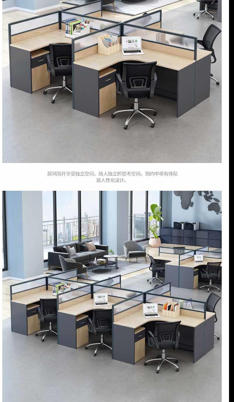 Bàn nhân viên bốn người đơn giản hiện đại / người phân vùng màn hình công ty bàn máy tính kết hợp ổn định