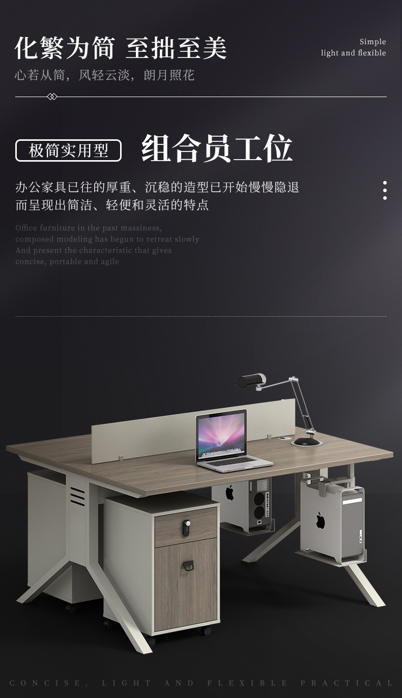 Bàn nhân viên công ty đơn giản, hiện đại khung thép 4-6 người nhân viên văn phòng ghế nội thất văn phòng kết hợp bàn ghế