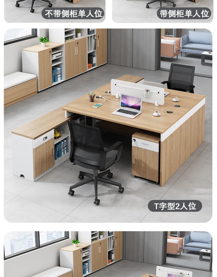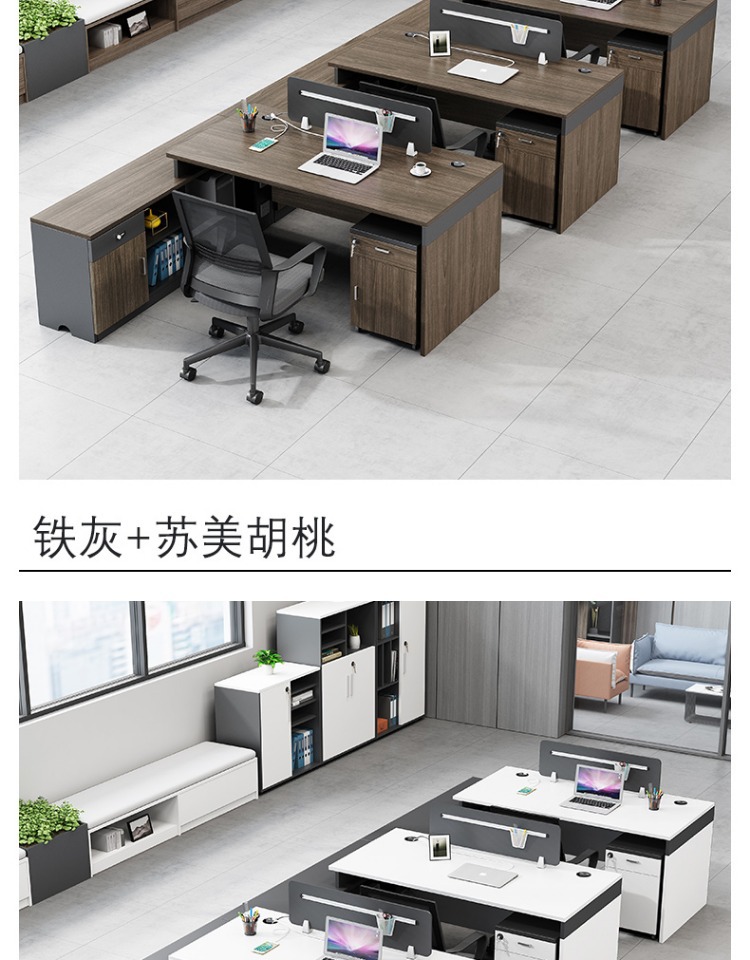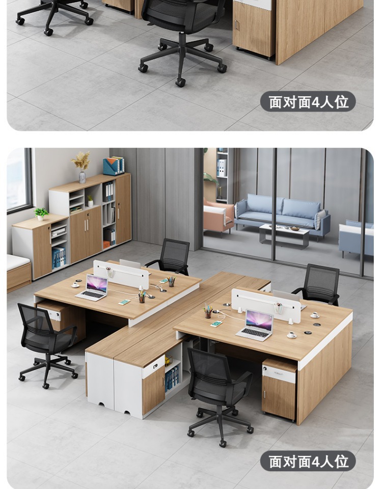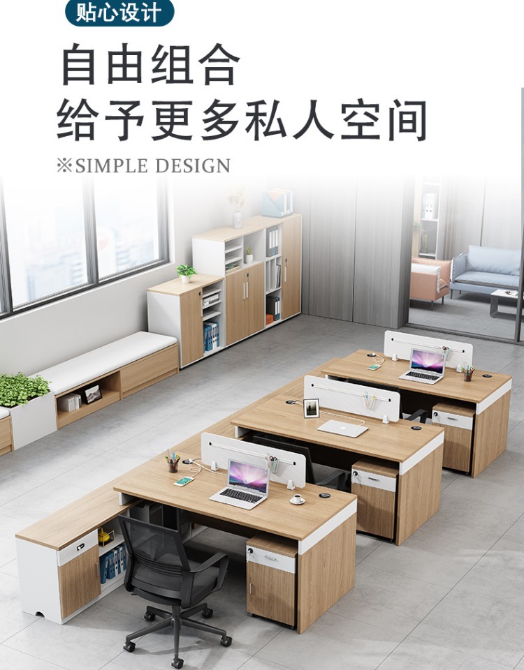 Bàn nhân viên đơn giản hiện đại đối mặt hai người văn phòng tài chính kết hợp bàn ghế bốn người