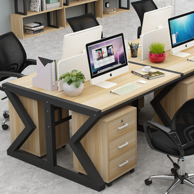 Bàn nhân viên gỗ thép đơn giản Bàn ghế nhân viên văn phòng 4 người kết hợp card màn hình bàn máy tính giá sỉ
