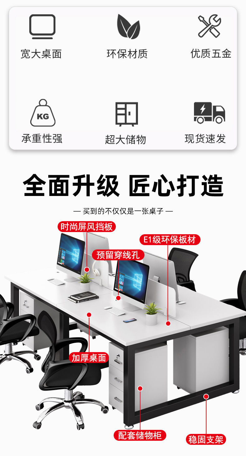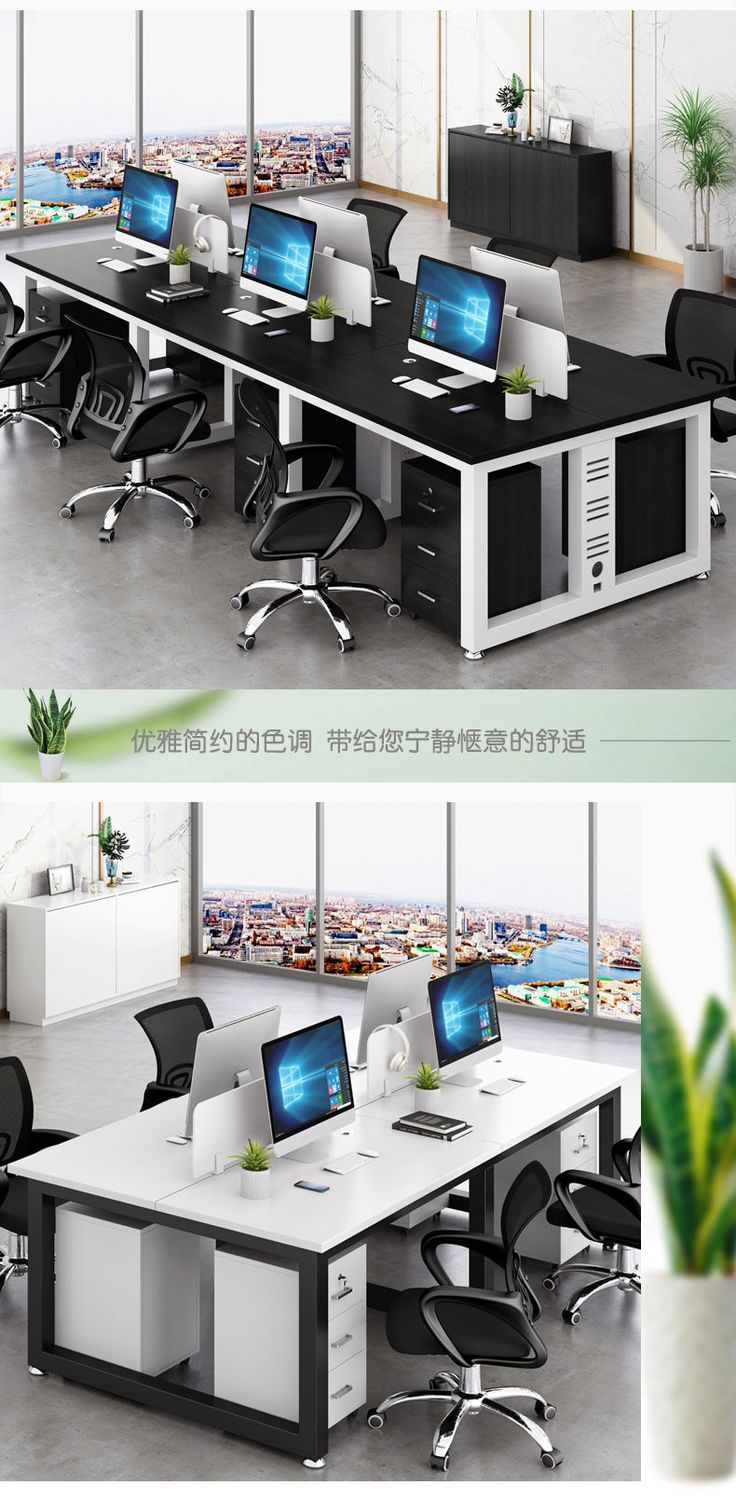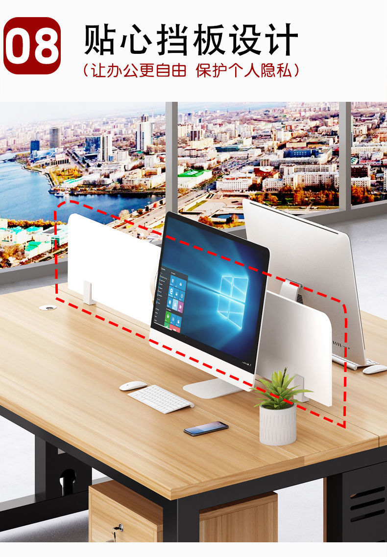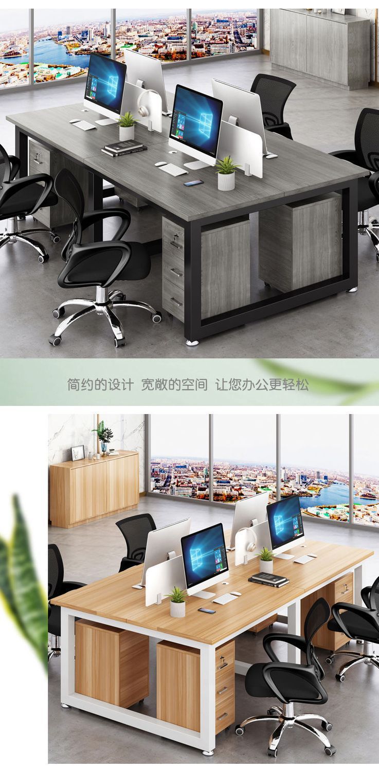 Bàn nhân viên hiện đại tối giản màn hình vách ngăn chỗ ngồi bốn hoặc sáu nhân viên kết hợp bàn ghế văn phòng
