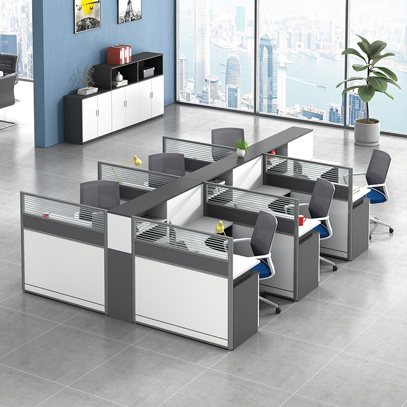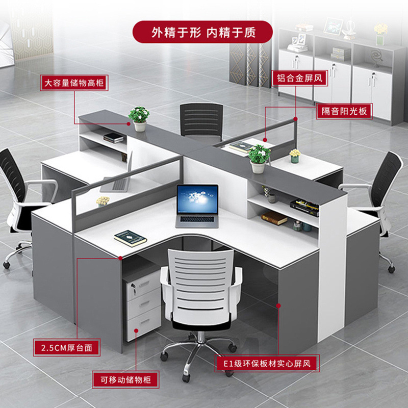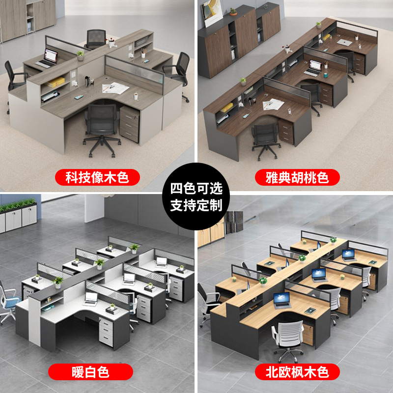 Bàn nhân viên màn hình văn phòng nhà ga tối giản hiện đại 4/6 người bàn máy tính kết hợp bàn ghế