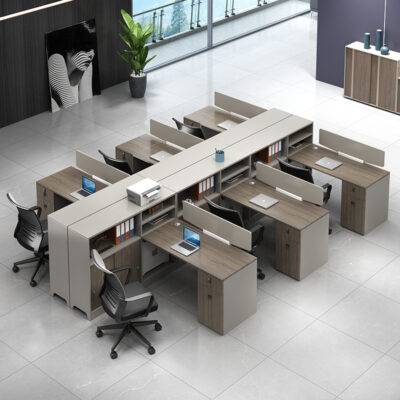 Bàn nhân viên văn phòng có tủ tài chính cao kết hợp bàn ghế kết hợp ghế 4 người vách ngăn màn hình bàn nhân viên