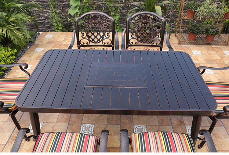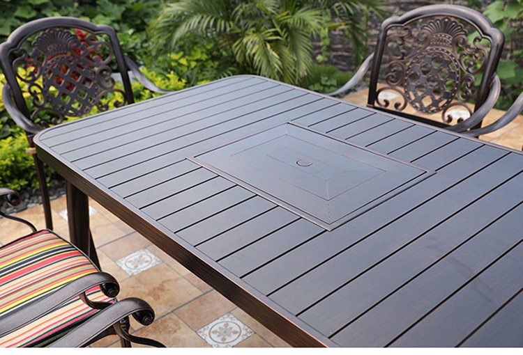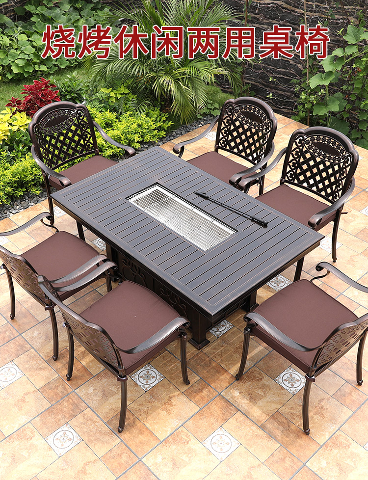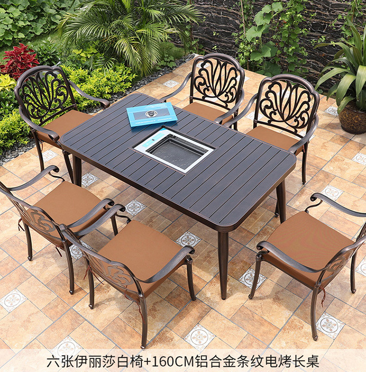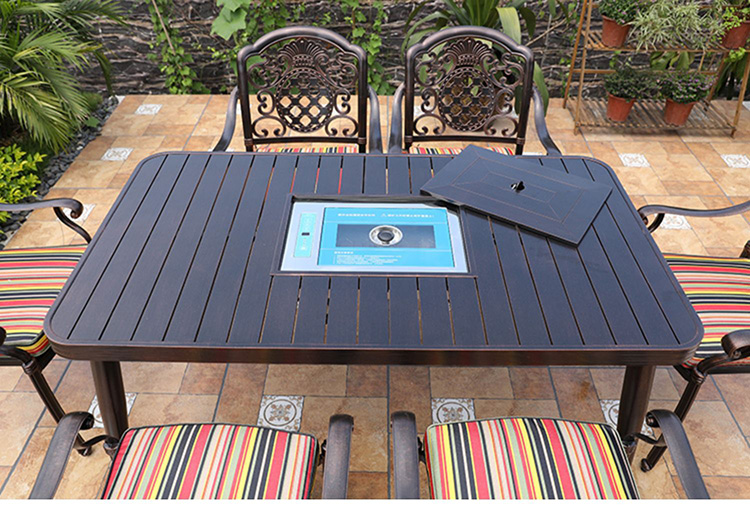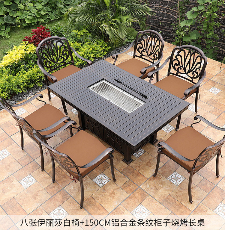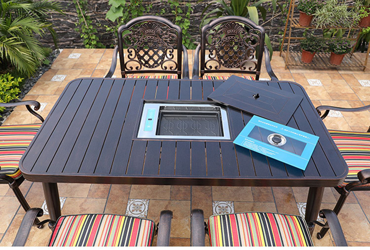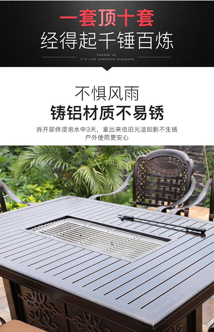 Bàn nhôm đúc bếp nướng ngoài trời nhập khẩu. được thiết kế để tạo điểm nhấn cho khu vực sân vườn, ban công hoặc không gian ngoài trời.