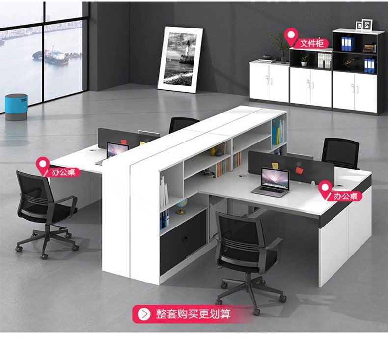Bàn tài chính đơn giản và hiện đại Bàn nhân viên 2/4/6 màn hình ghế ngồi kết hợp bàn ghế đôi