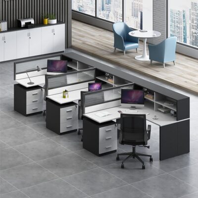 Bàn tài chính văn phòng đơn giản hiện đại bàn nhân viên có khe cắm màn hình 2/4-6 người kết hợp bàn ghế máy tính