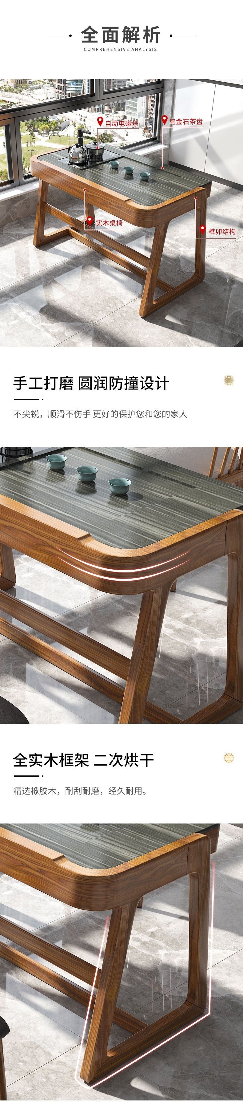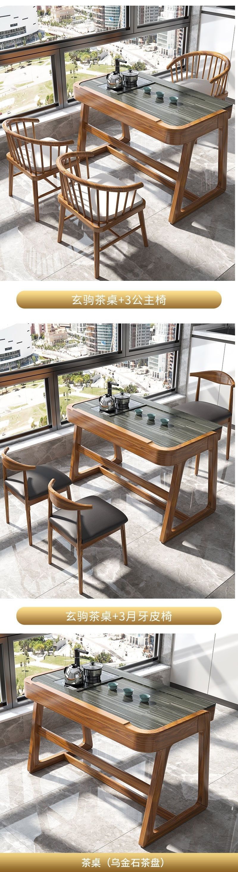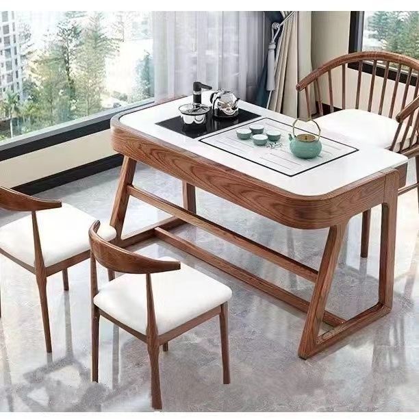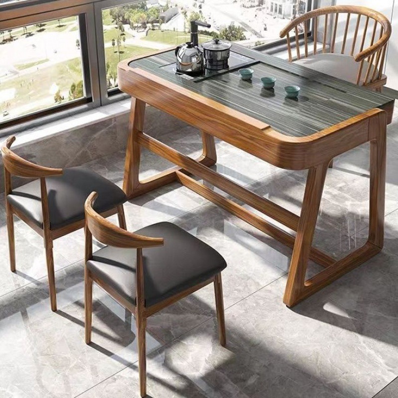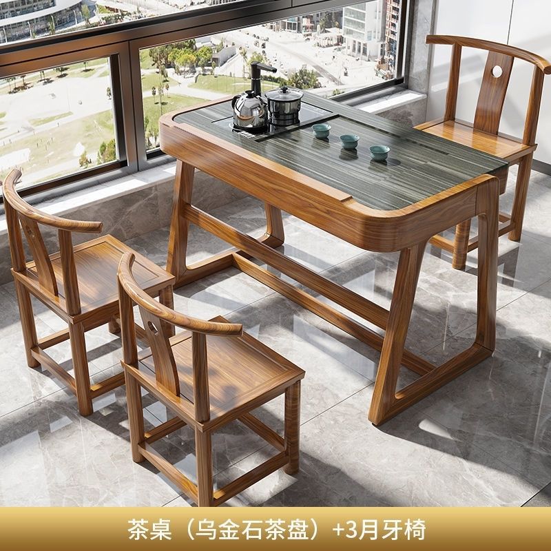 Bàn trà ban công và ghế kết hợp phong cách Trung Quốc mới Kung Fu gỗ đặc bàn cà phê nhỏ căn hộ nhỏ văn phòng Bàn trà tối giản hiện đại