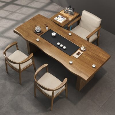 Bàn trà bảng lớn kiểu Trung Quốc mới và ghế kết hợp Bàn trà văn phòng trọn bộ Zen Bàn trà phòng khách bằng gỗ cứng Bàn trà Kung Fu