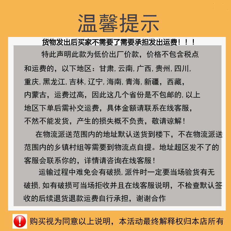 1.本产品页面的标价都是不包括发票税点和物流运费的。需要咨询客服补运费,否则有权利不发货,拍下默认遵守这规则。 2.需要开票另加税点。 3.由于仓库少手少,库存可能更新不过来,如果少货客服会主动联系您换货的。