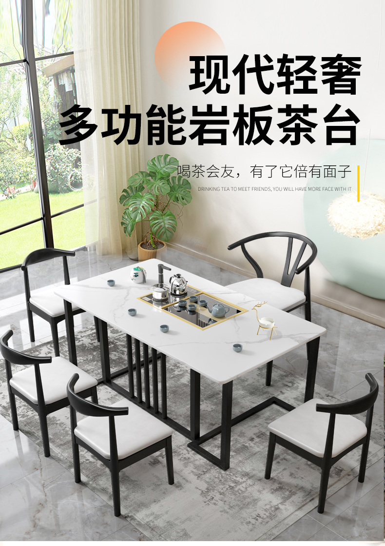 Bàn trà đá bàn trà kết hợp ghế phòng khách Bàn trà hình chữ nhật Bàn trà văn phòng Bàn trà kiểu trung quốc mới đơn giản