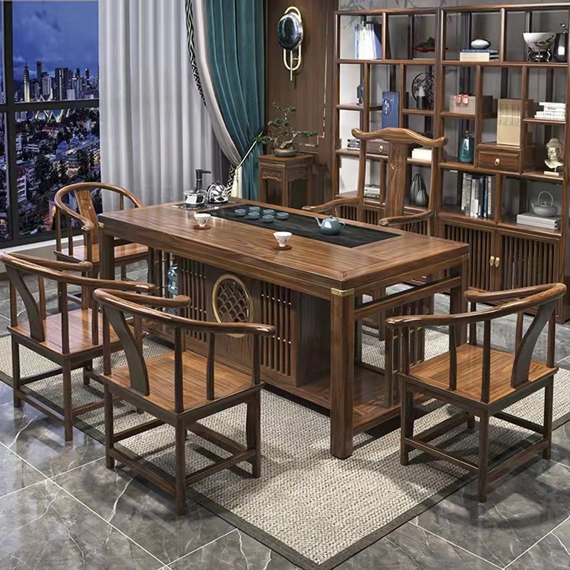 Bàn trà đá cẩm thạch phong cách Trung Quốc mới Bàn ghế ăn gỗ nguyên khối kết hợp ban công tiếp tân văn phòng Kung Fu Bàn trà đơn giản