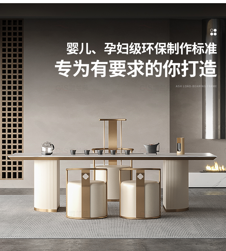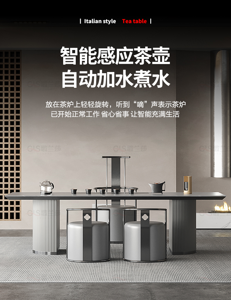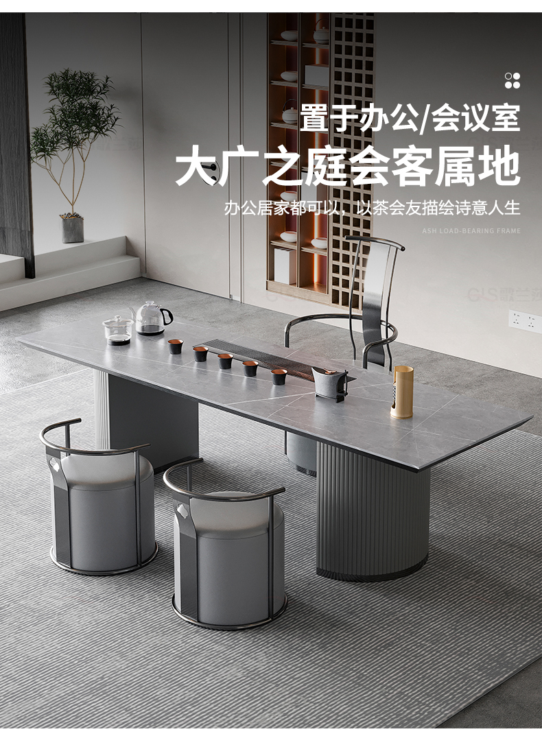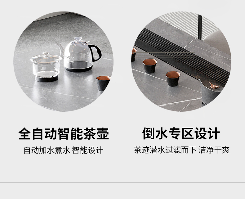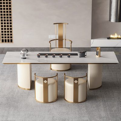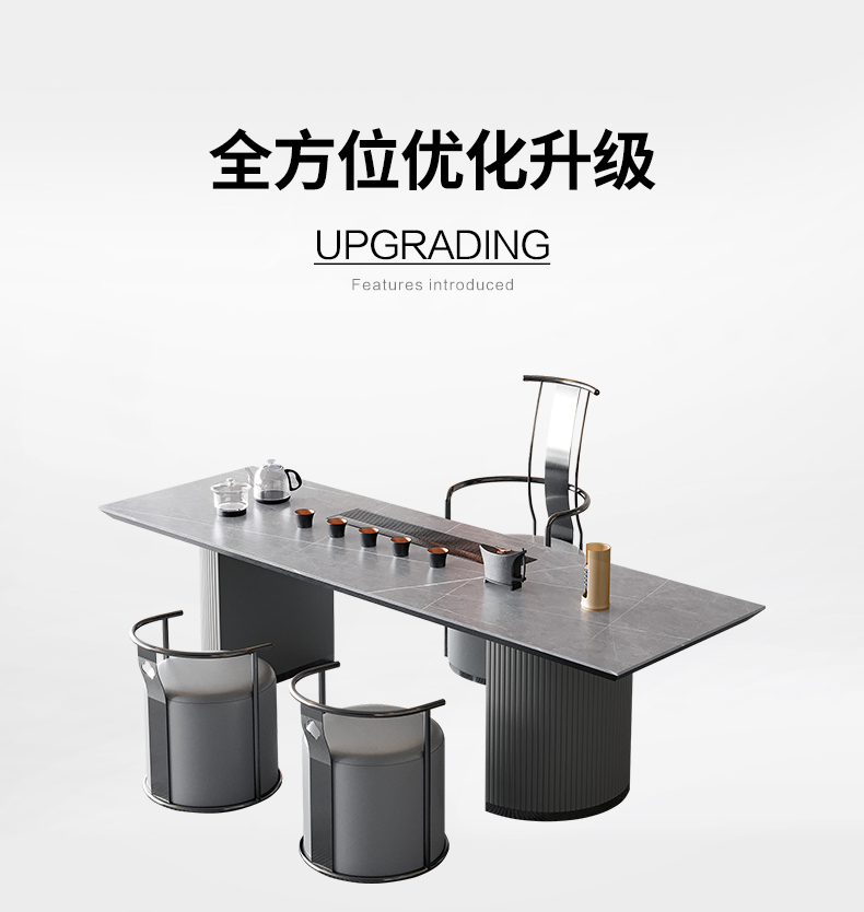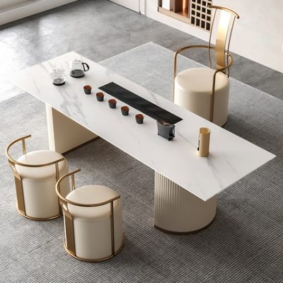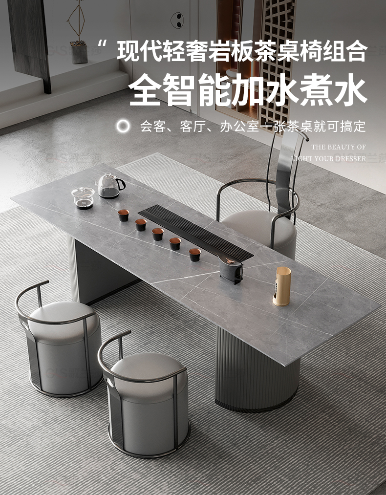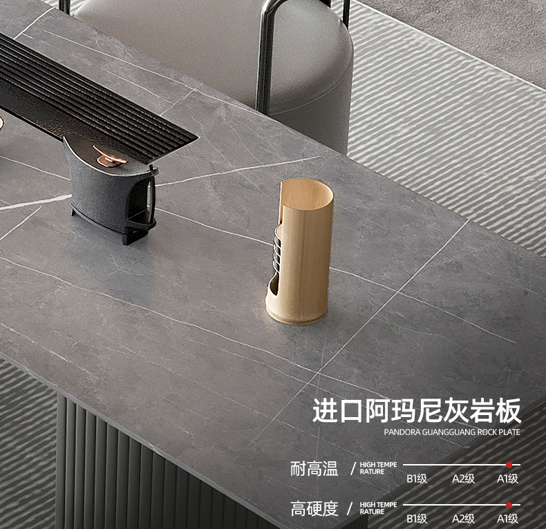 Bàn trà đá phiến nhẹ sang trọng, phòng khách cao cấp, bàn trà tấm lớn, bàn trà văn phòng hiện đại tối giản, bộ ấm chén làm một