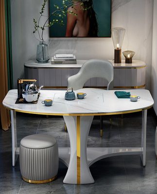 Bàn trà đá phiến nhẹ sang trọng, phòng khách cao cấp, bàn trà tấm lớn, bàn trà văn phòng hiện đại tối giản, bộ ấm chén làm một
