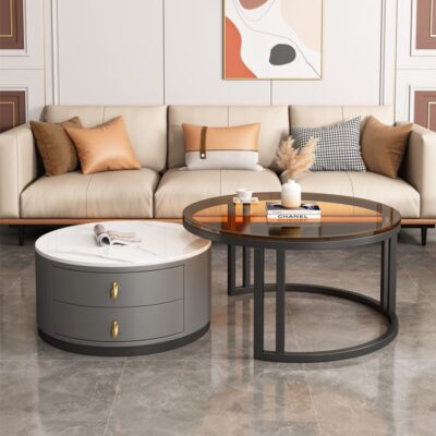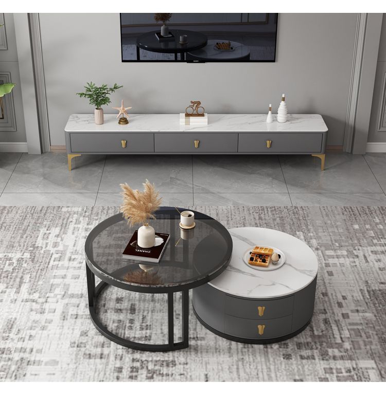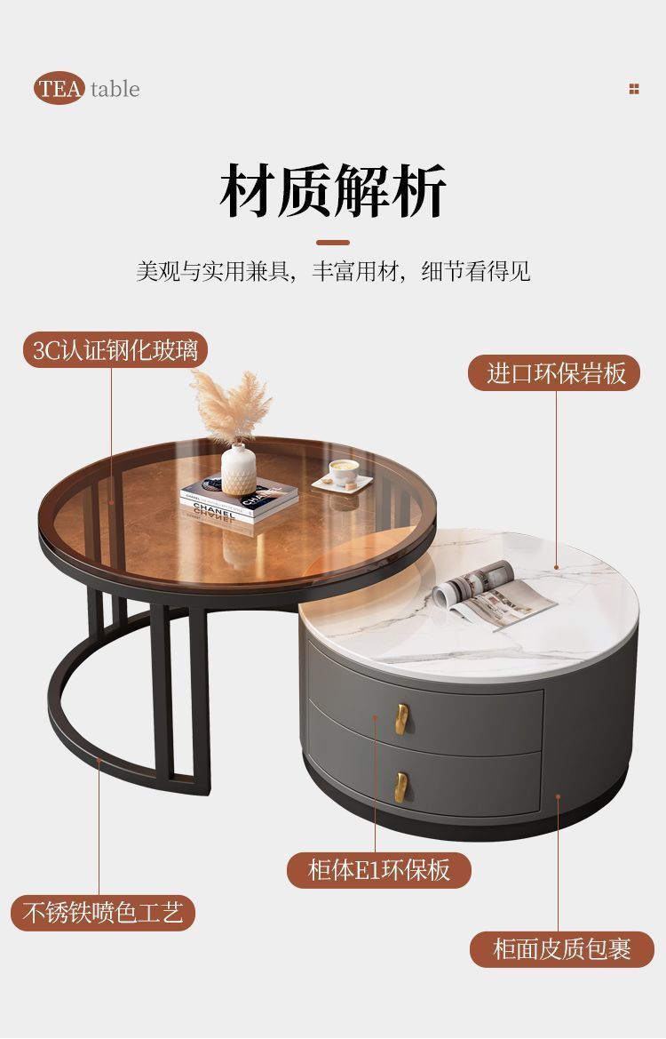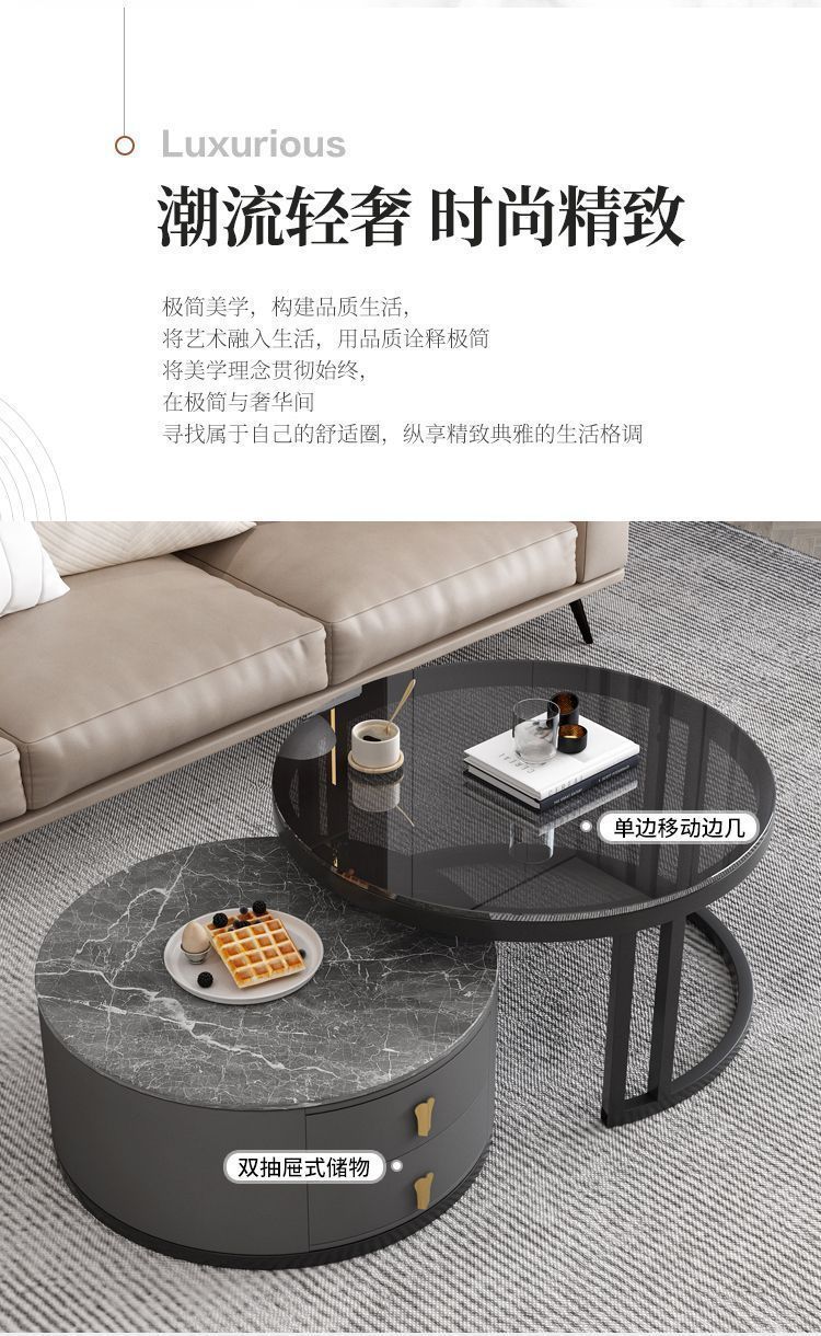 Bàn trà đẹp phiến đá bàn trà phòng khách nhà căn hộ nhỏ bàn Châu Âu hiện đại tối giản bàn cà phê kính bộ tủ TV