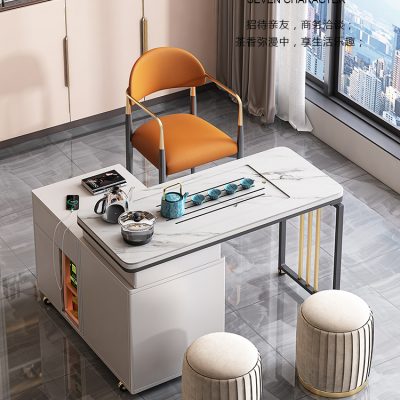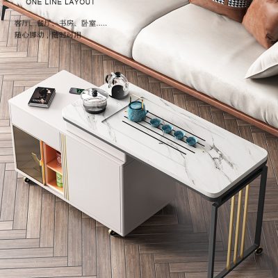 Bàn trà di động có bánh xe di chuyển dễ dàng.