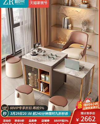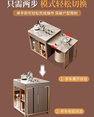 Bàn trà di động, mặt bàn đá sang trọng nhập khẩu.